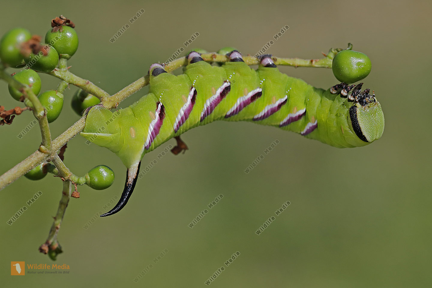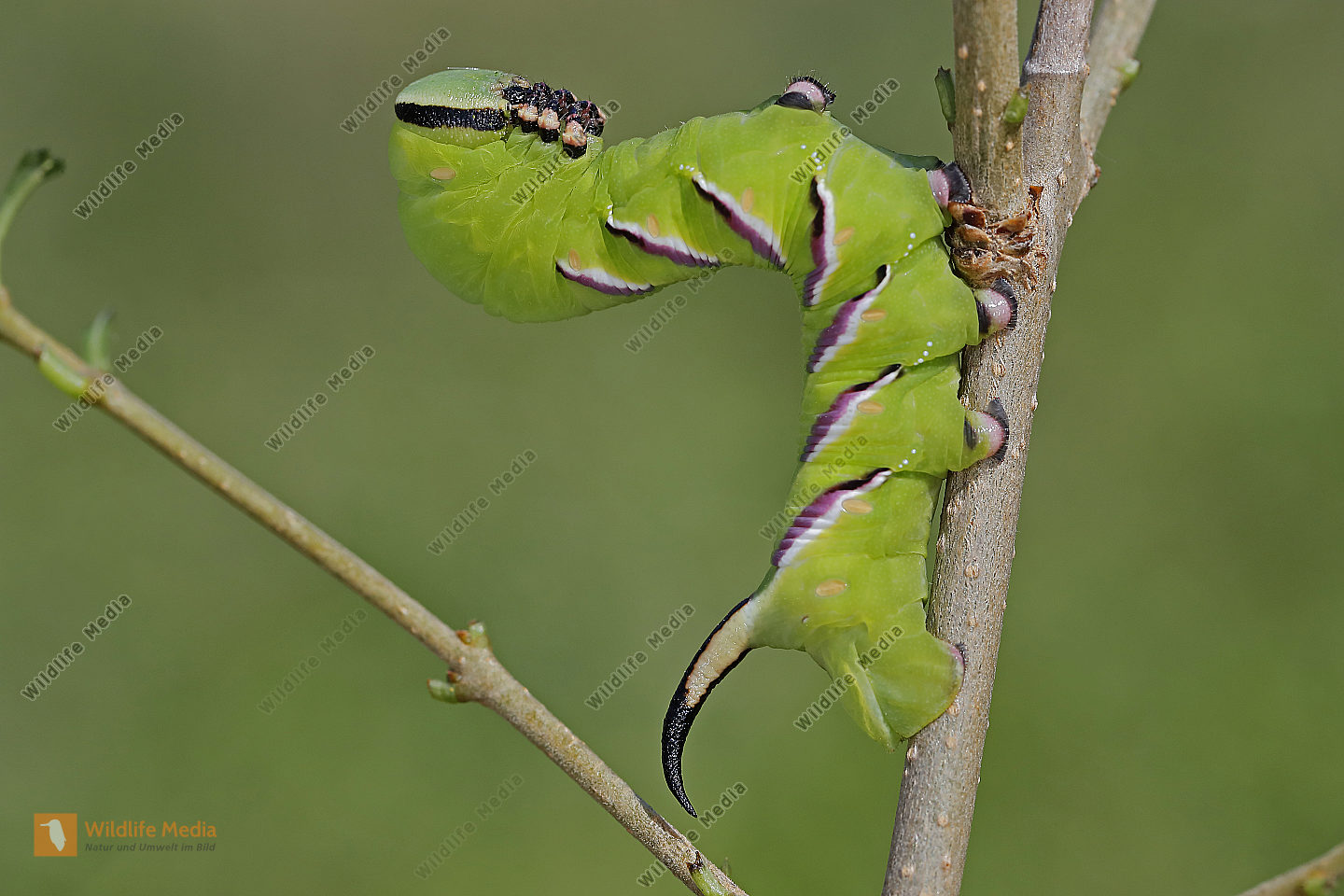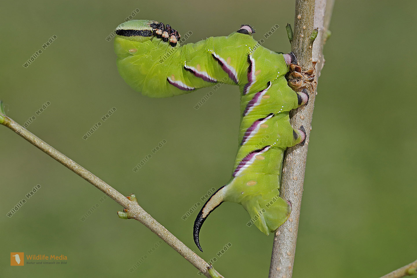 Mittlerer Weinschwärmer halberwachsene Raupe