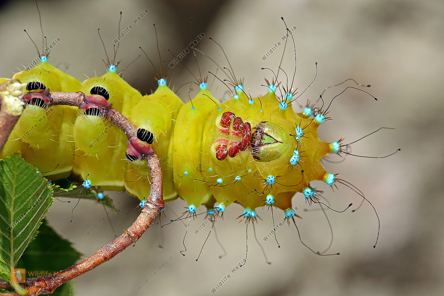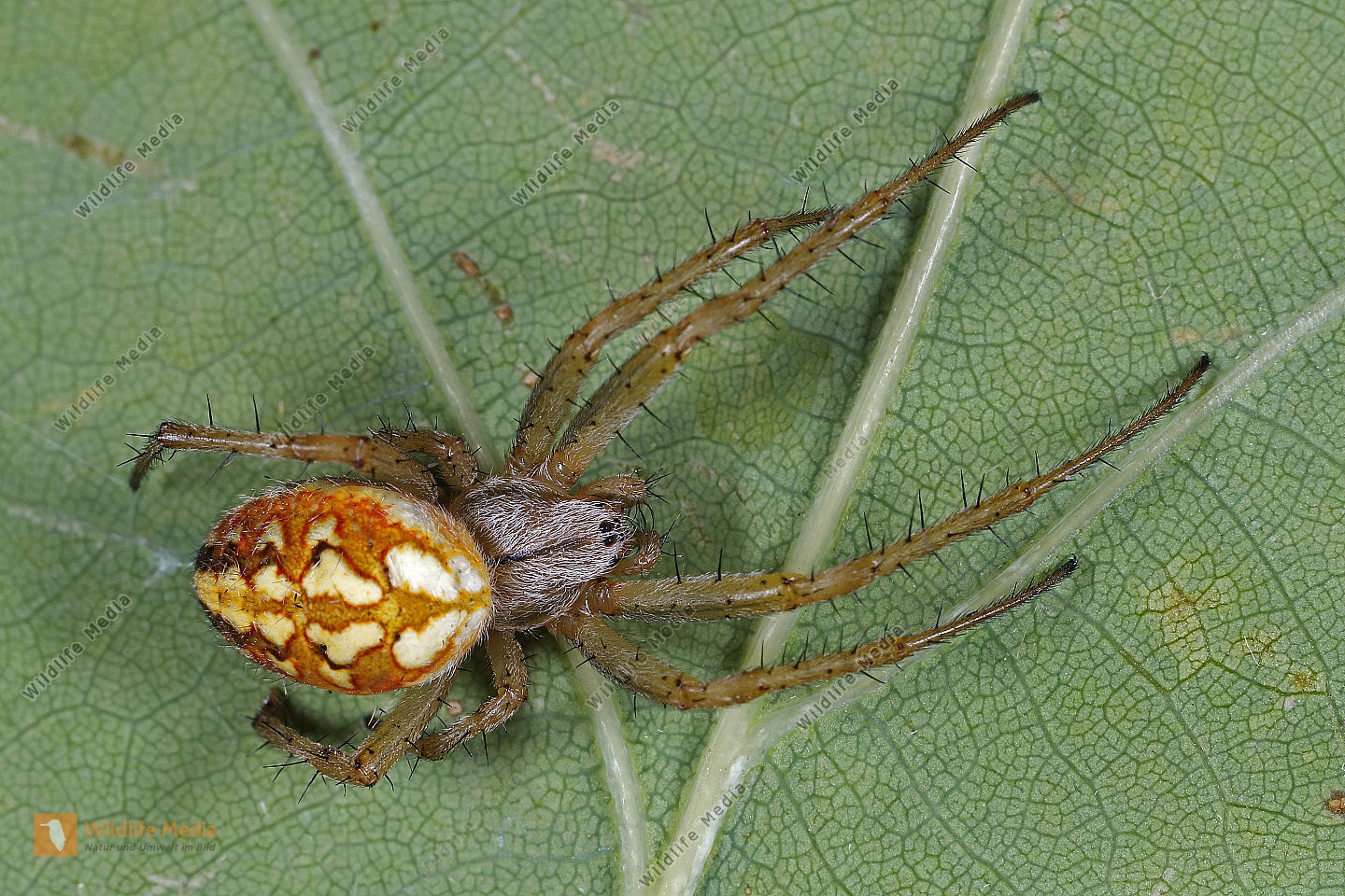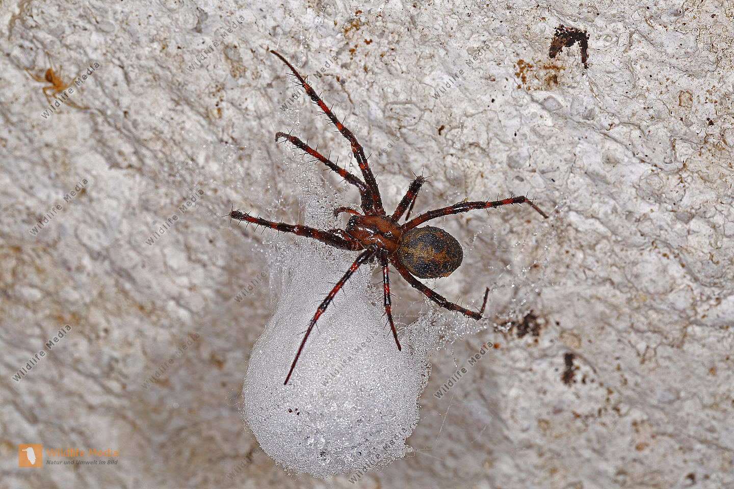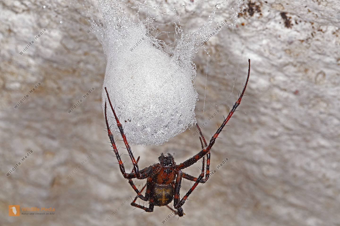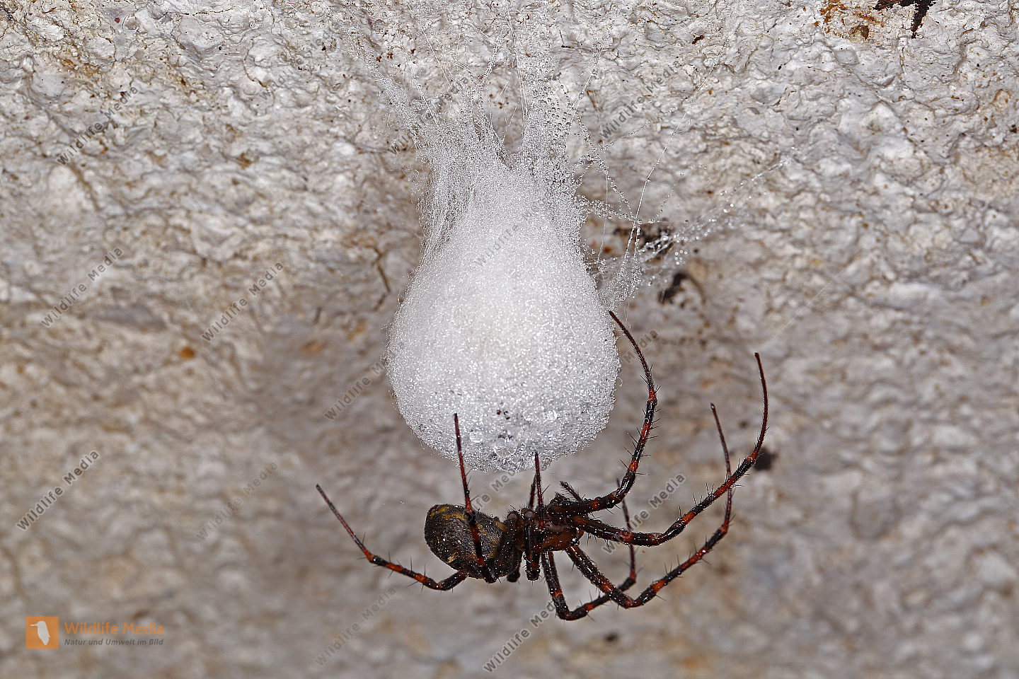 Ein Erlenzeisig pickt an der Erlenfrucht