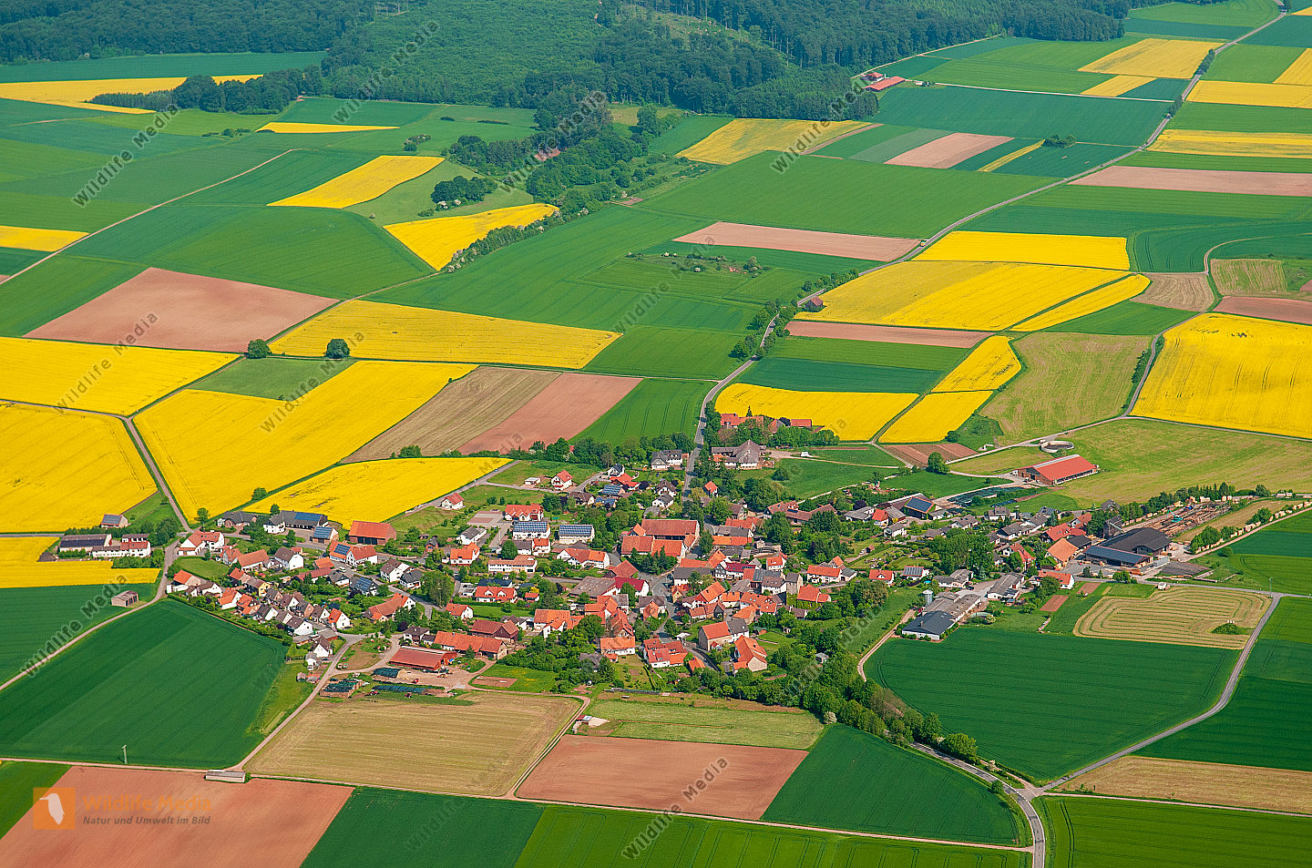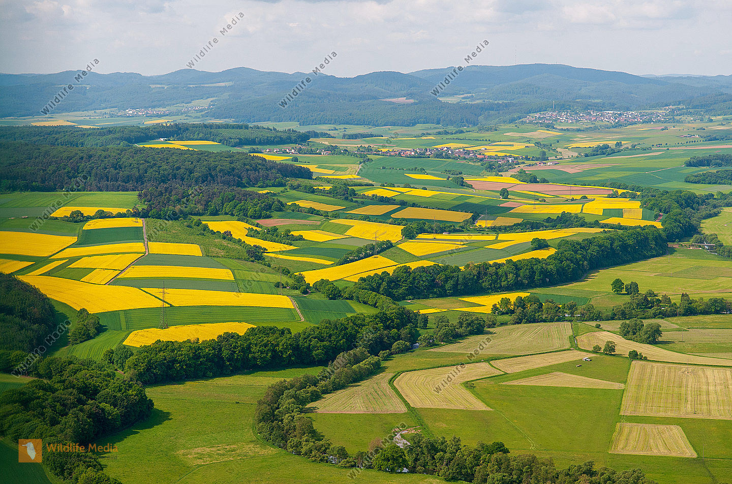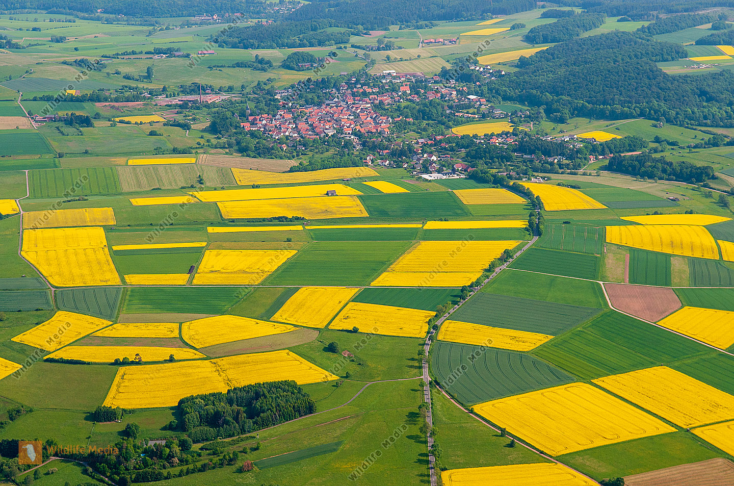Landschaft mit Rapsfeldern Insel Fehmarn Luftaufnahme