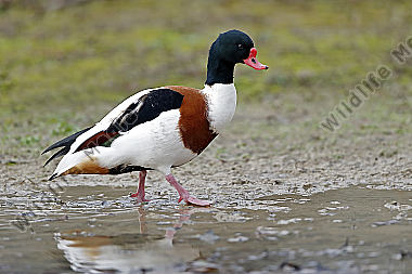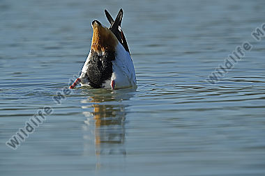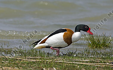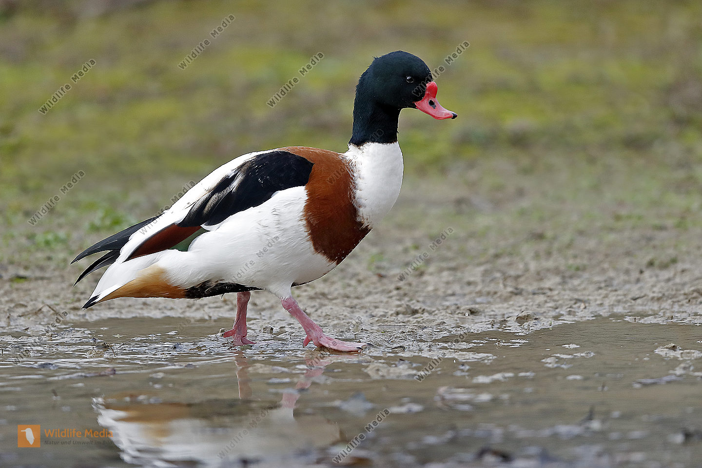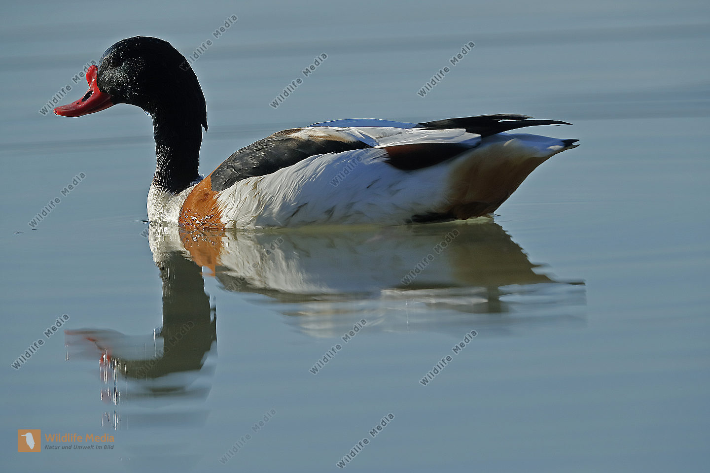 Eine Brandgans im Schilf der Wagbachniederung in Baden-Württemberg