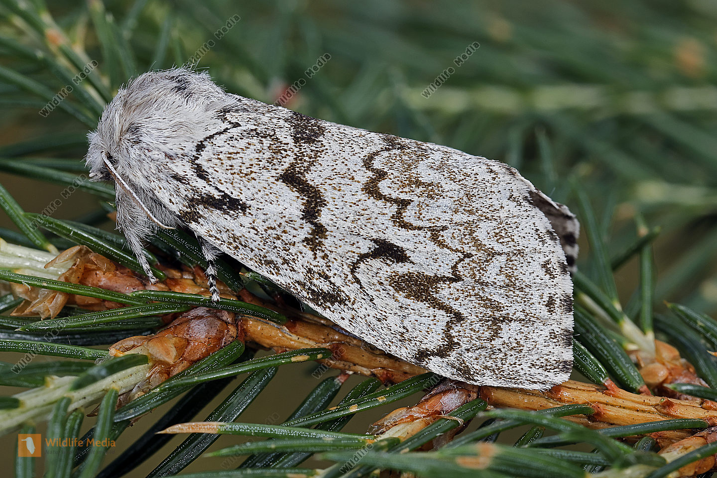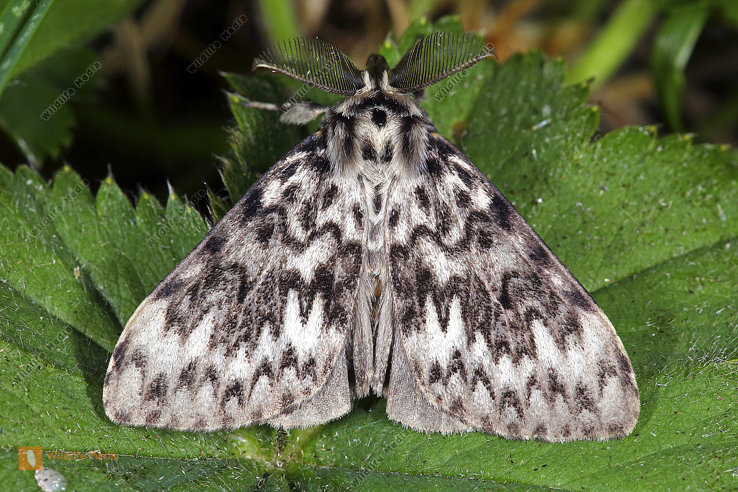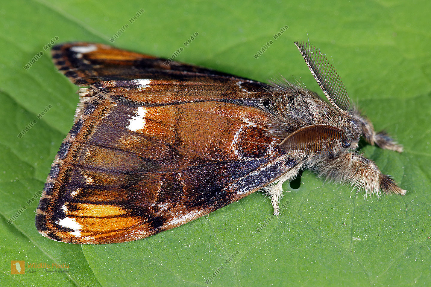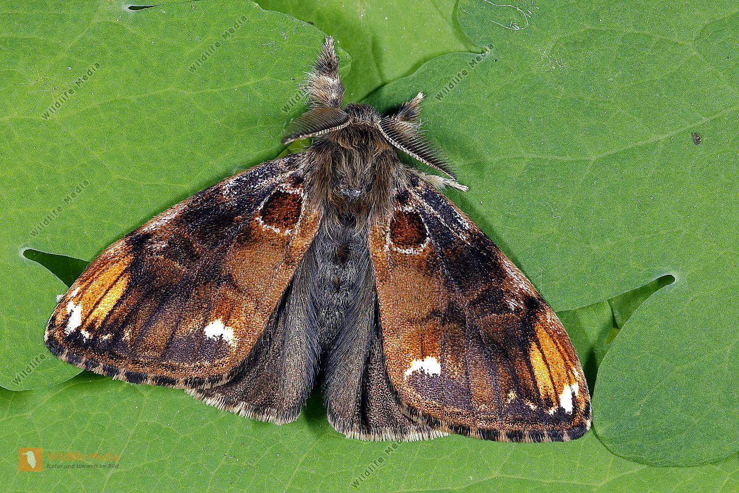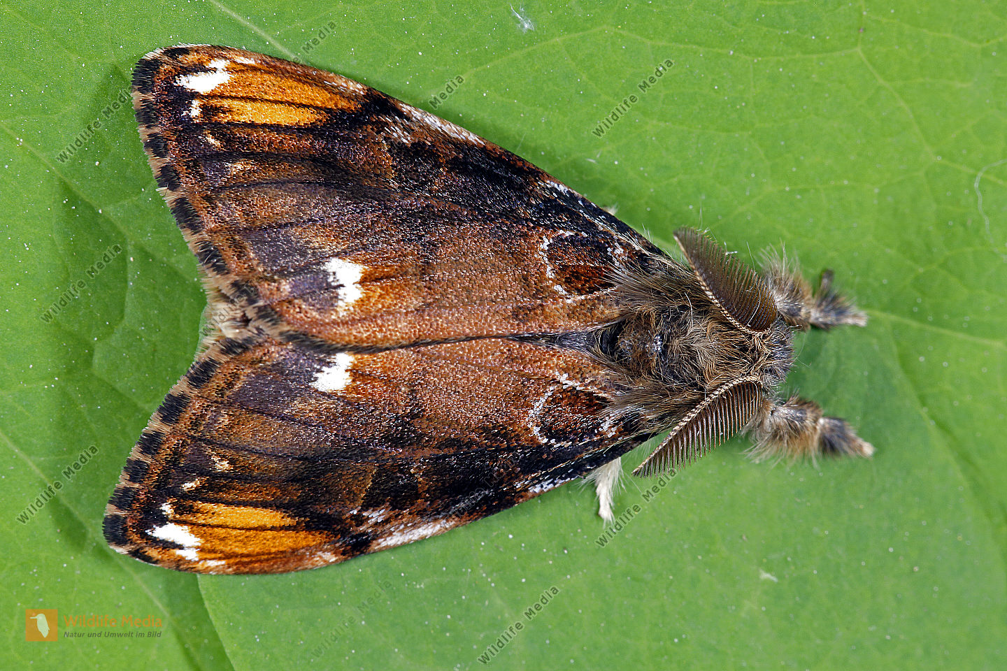 Eckfleck-Bürstenspinner Männchen