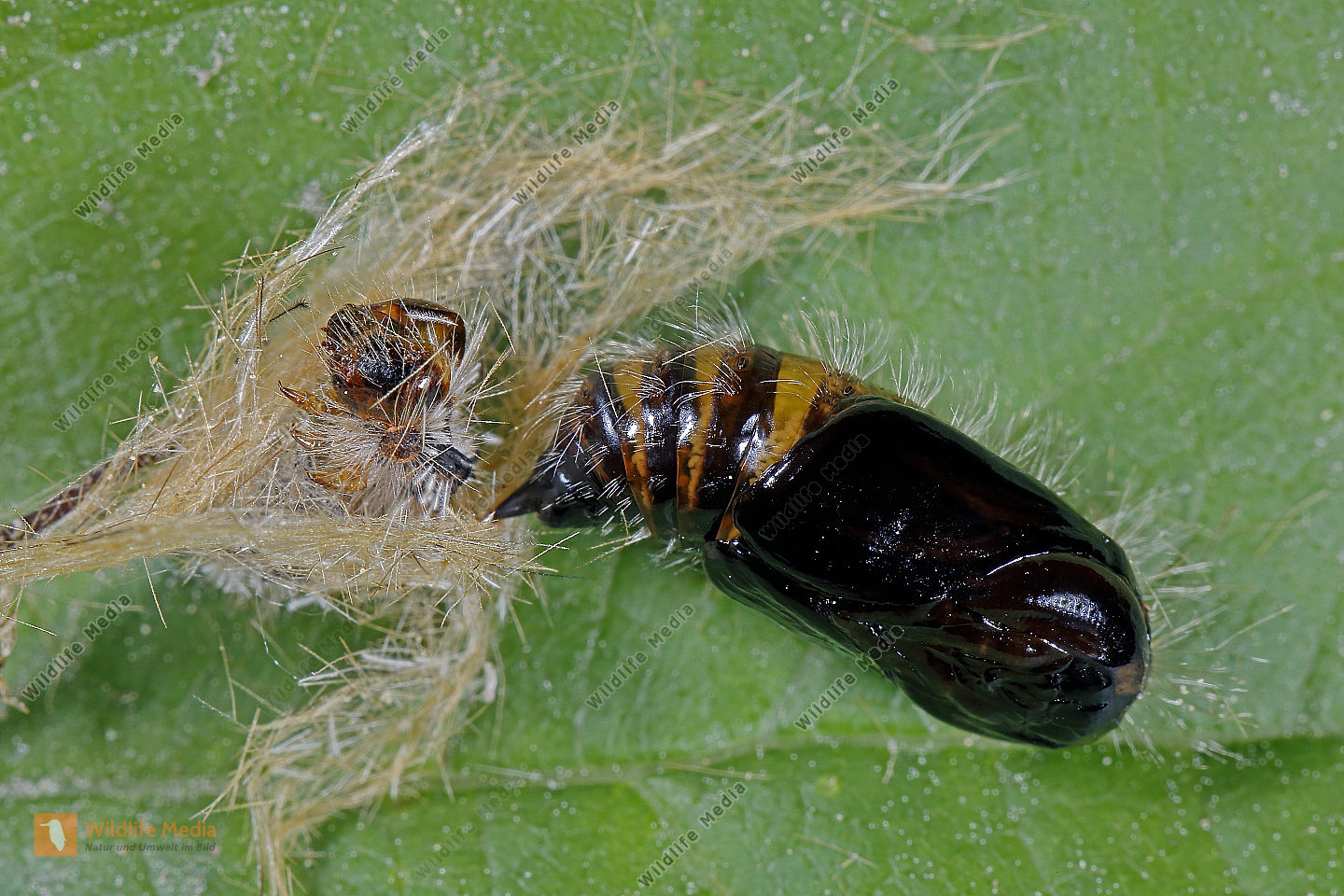 Eckfleck-Bürstenspinner Puppe