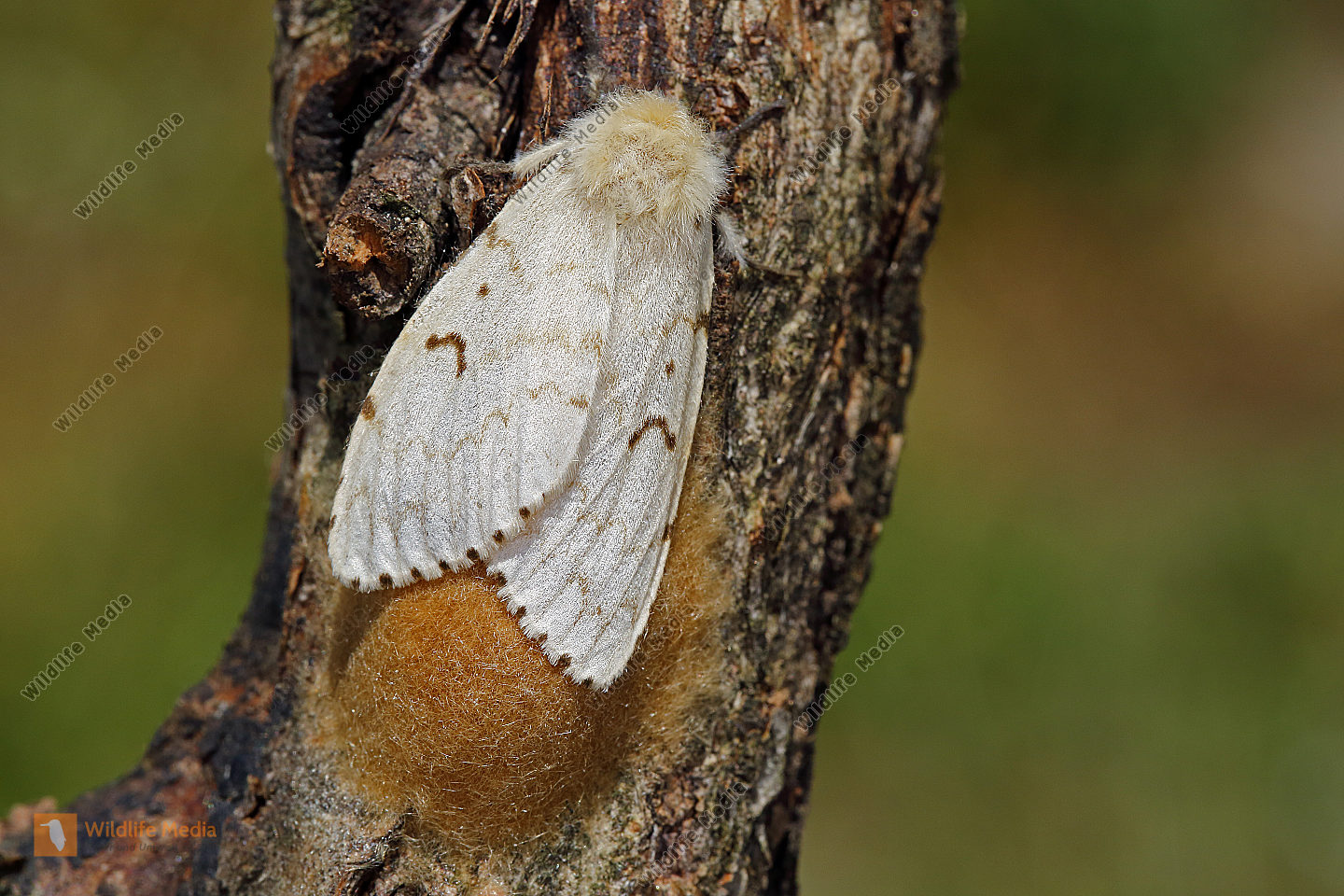 Schwammspinner Weibchen mit Eigelege