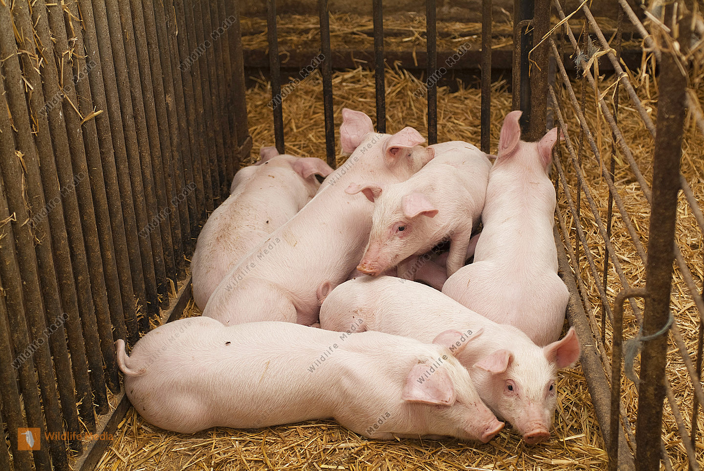 Jacobsschaf-Lämmer Ovis aries im Stall