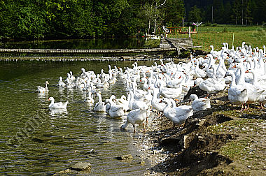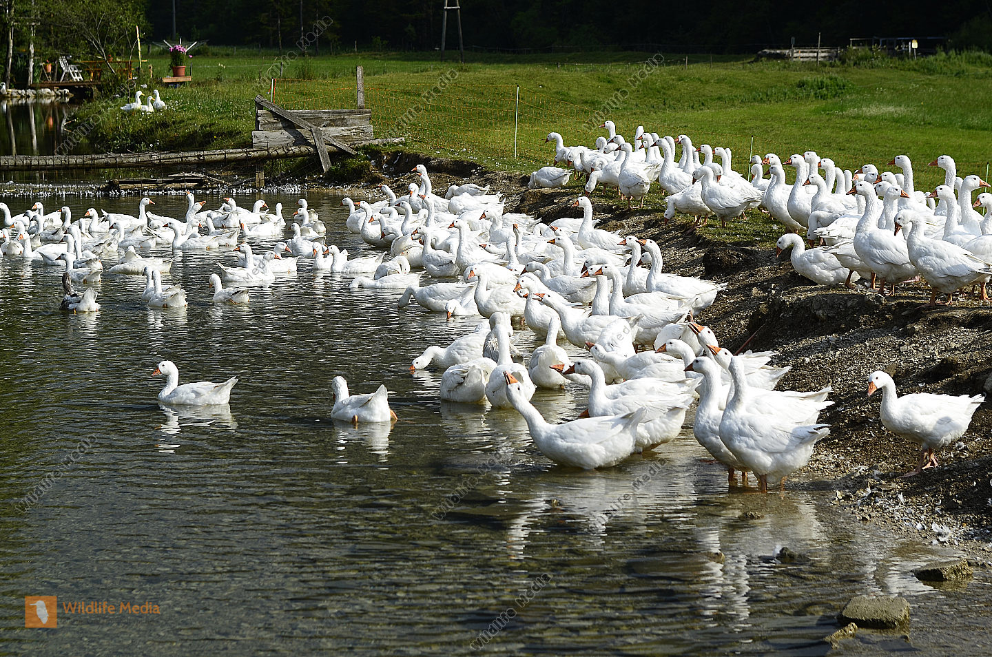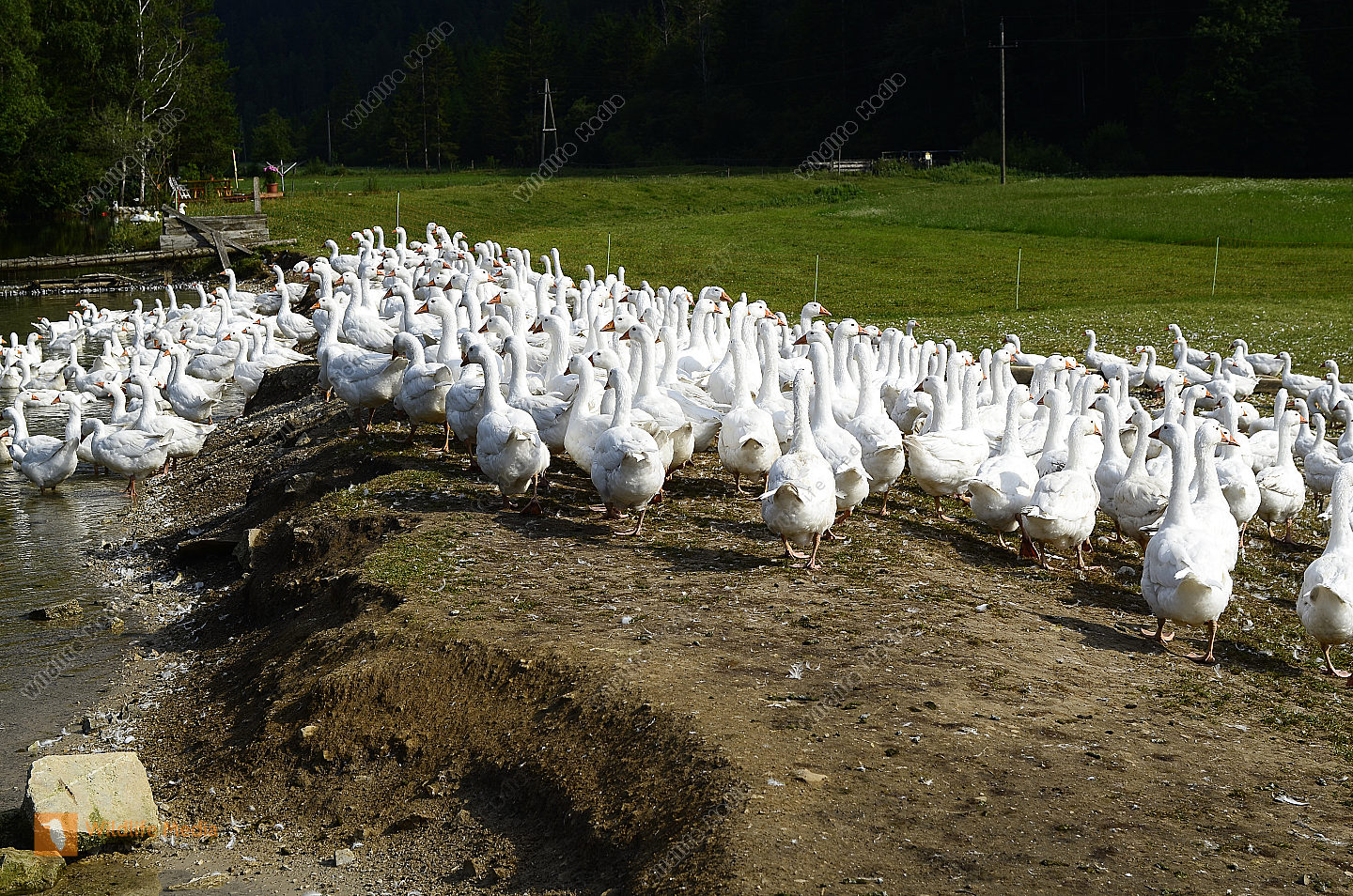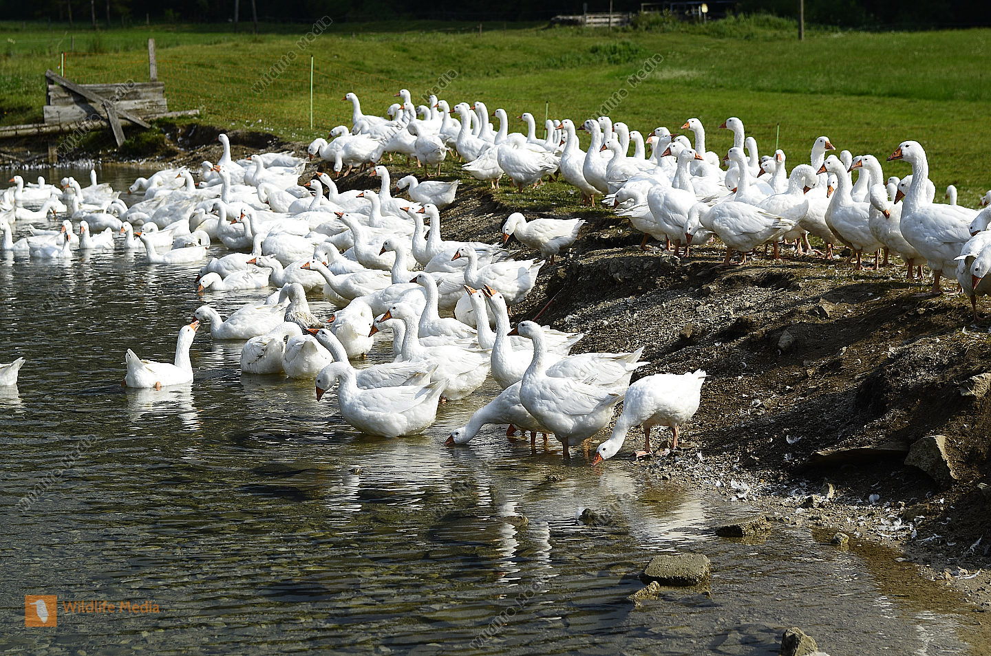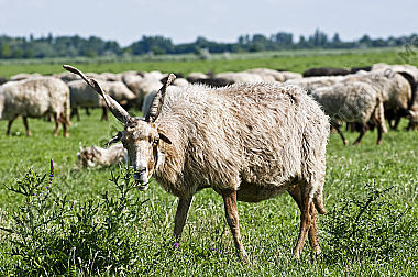 Schafherde Ovis aries an der Altmühl im Altmühltal