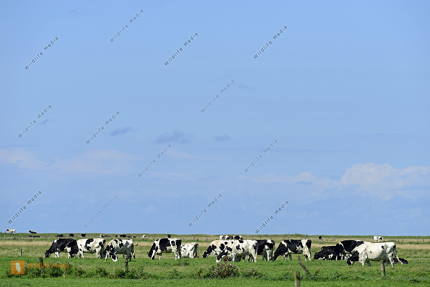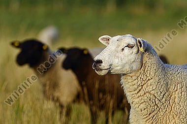 Texelschaf Ovis aries auf dem Deich/Fehmarn