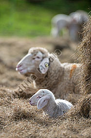 Alpines Steinschaf Muttertier Ovis aries im Stall