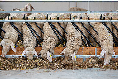 Alpines Steinschafe Muttertiere Ovis aries im Stall