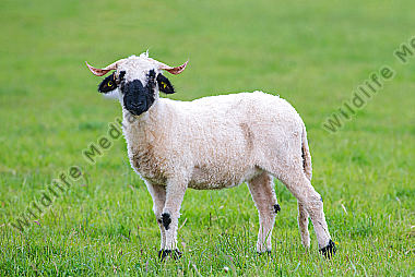 Walliser Schwarznasenschaf Ovis aries auf der Weide