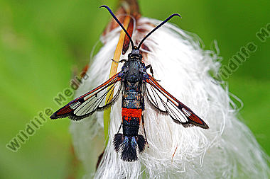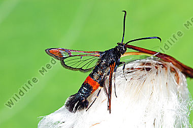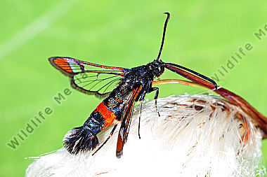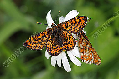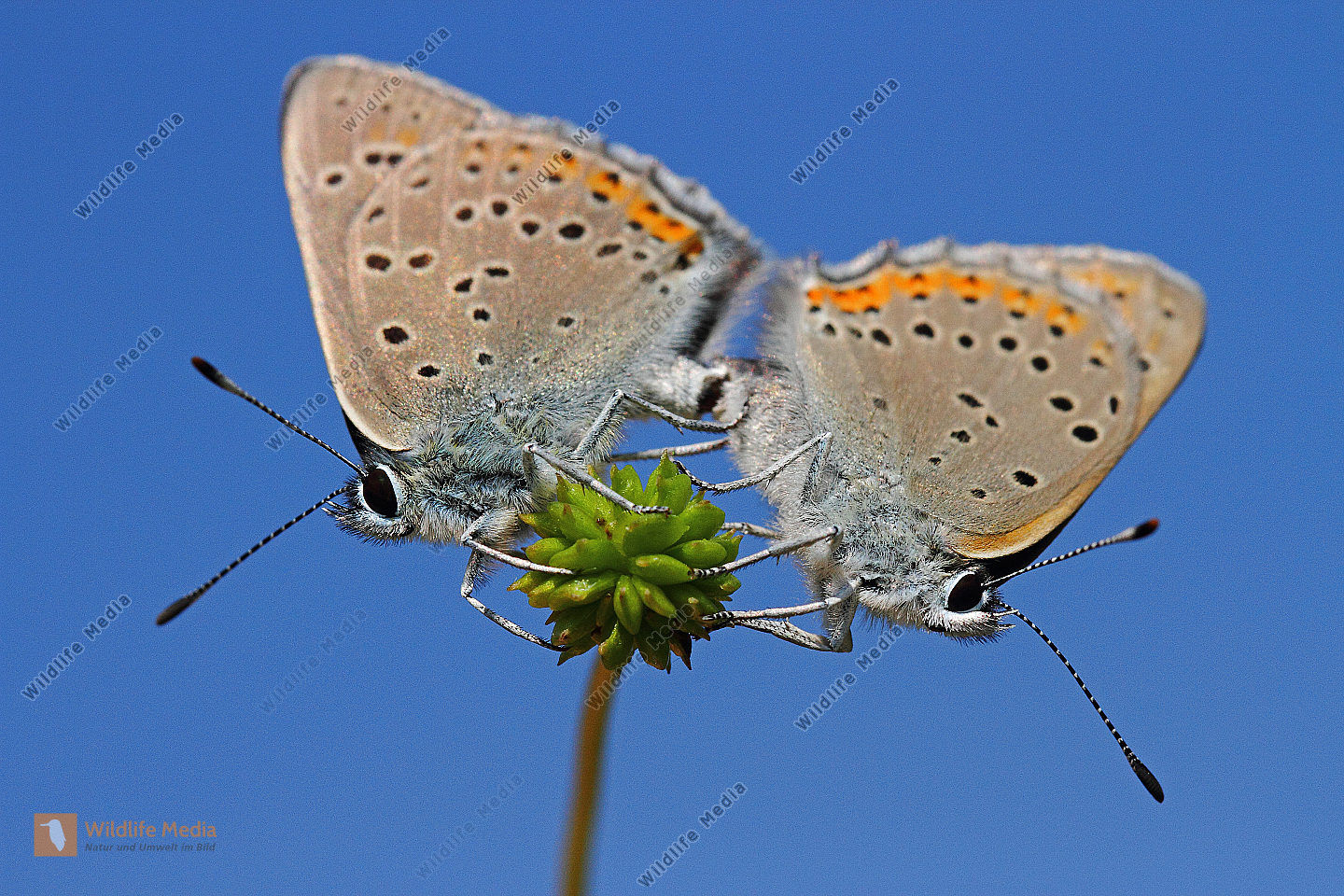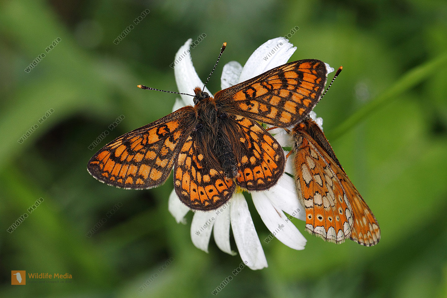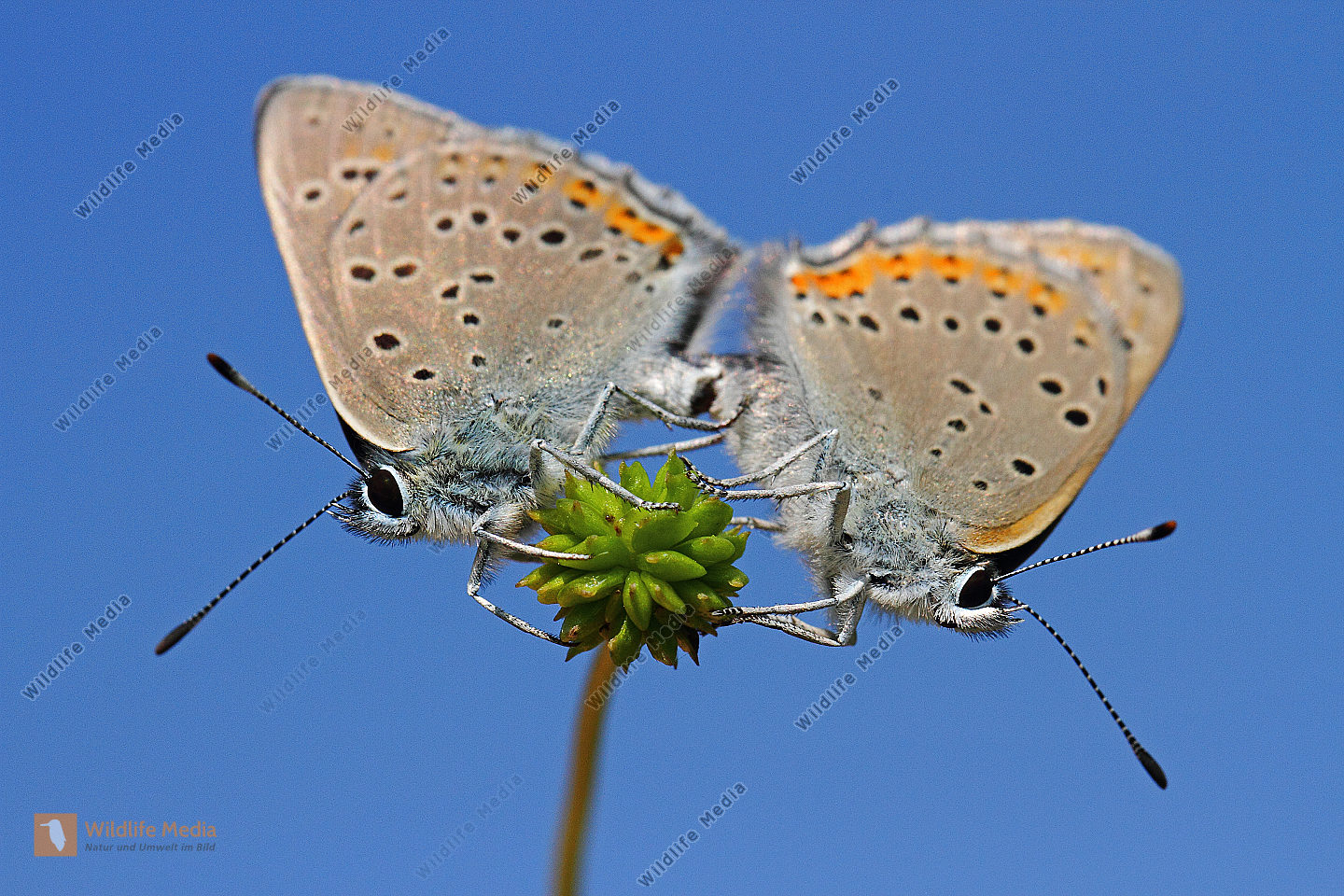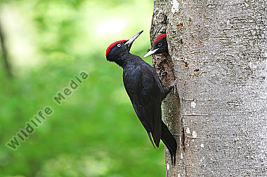 Weißrückenspecht Männchen in Konfrontation mit Buntspecht Männch