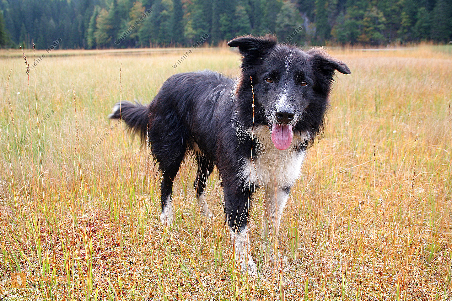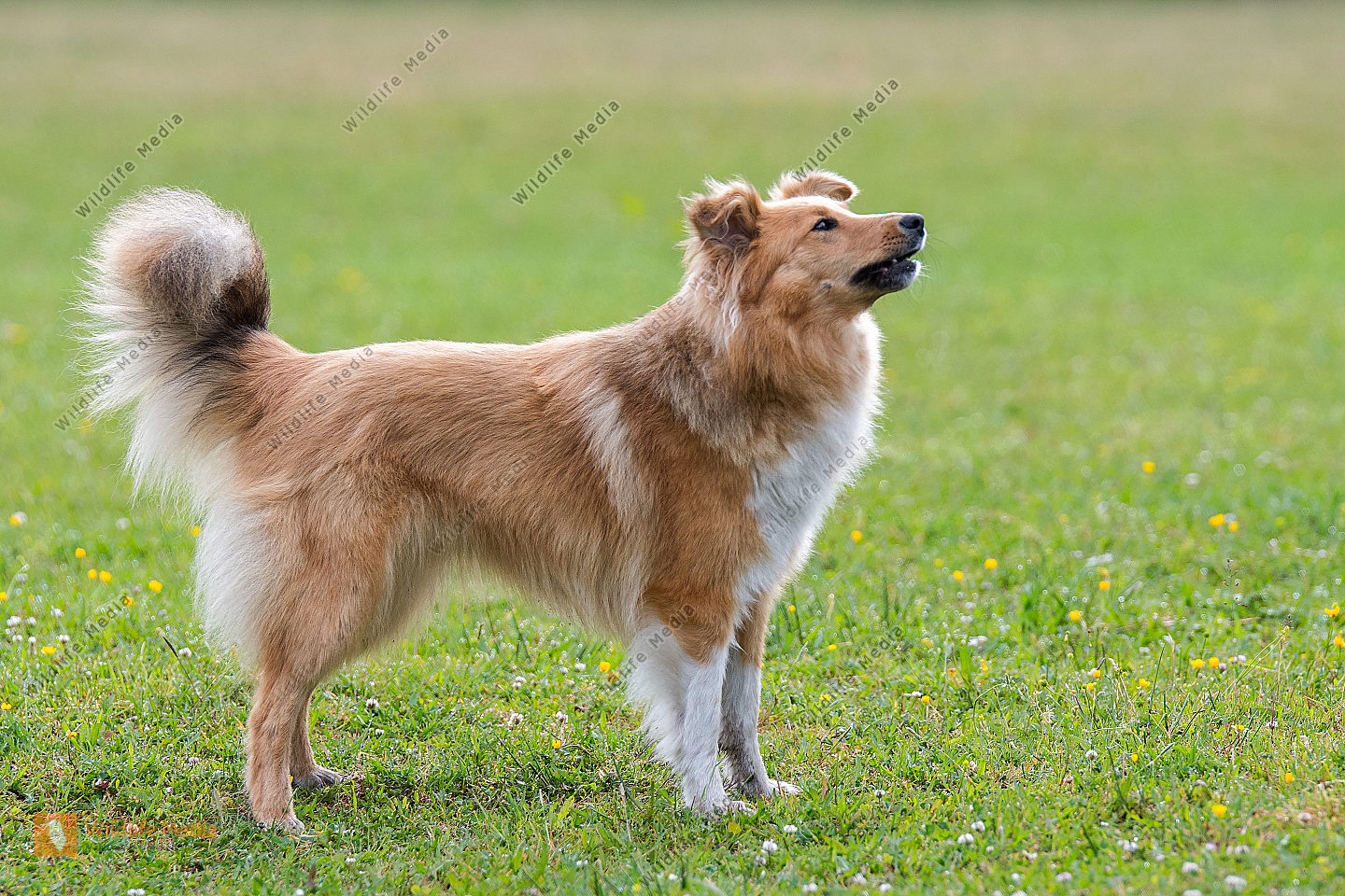 Deutscher Schäferhund Canis lupus familiaris auf der Schafweide