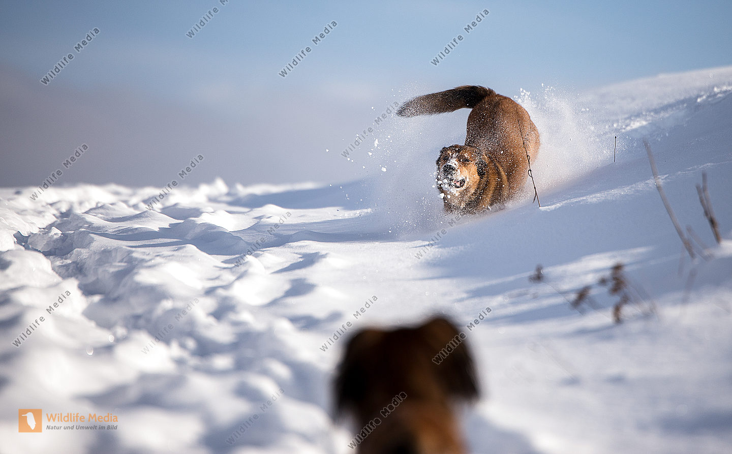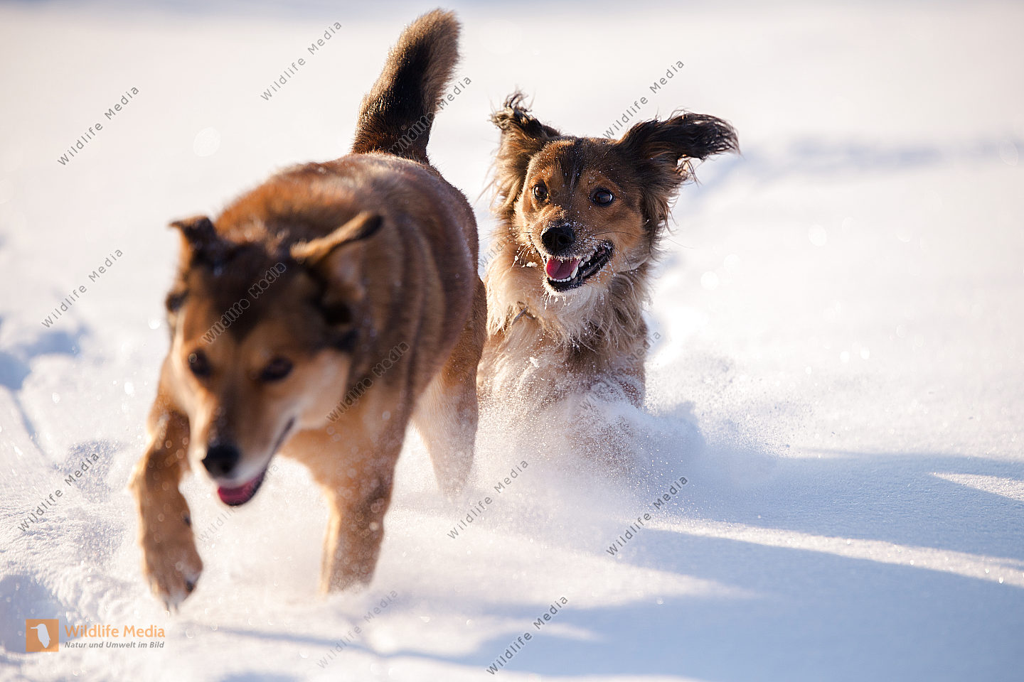 Schlittenhundegespann Canis lupus familiaris beim Rennen