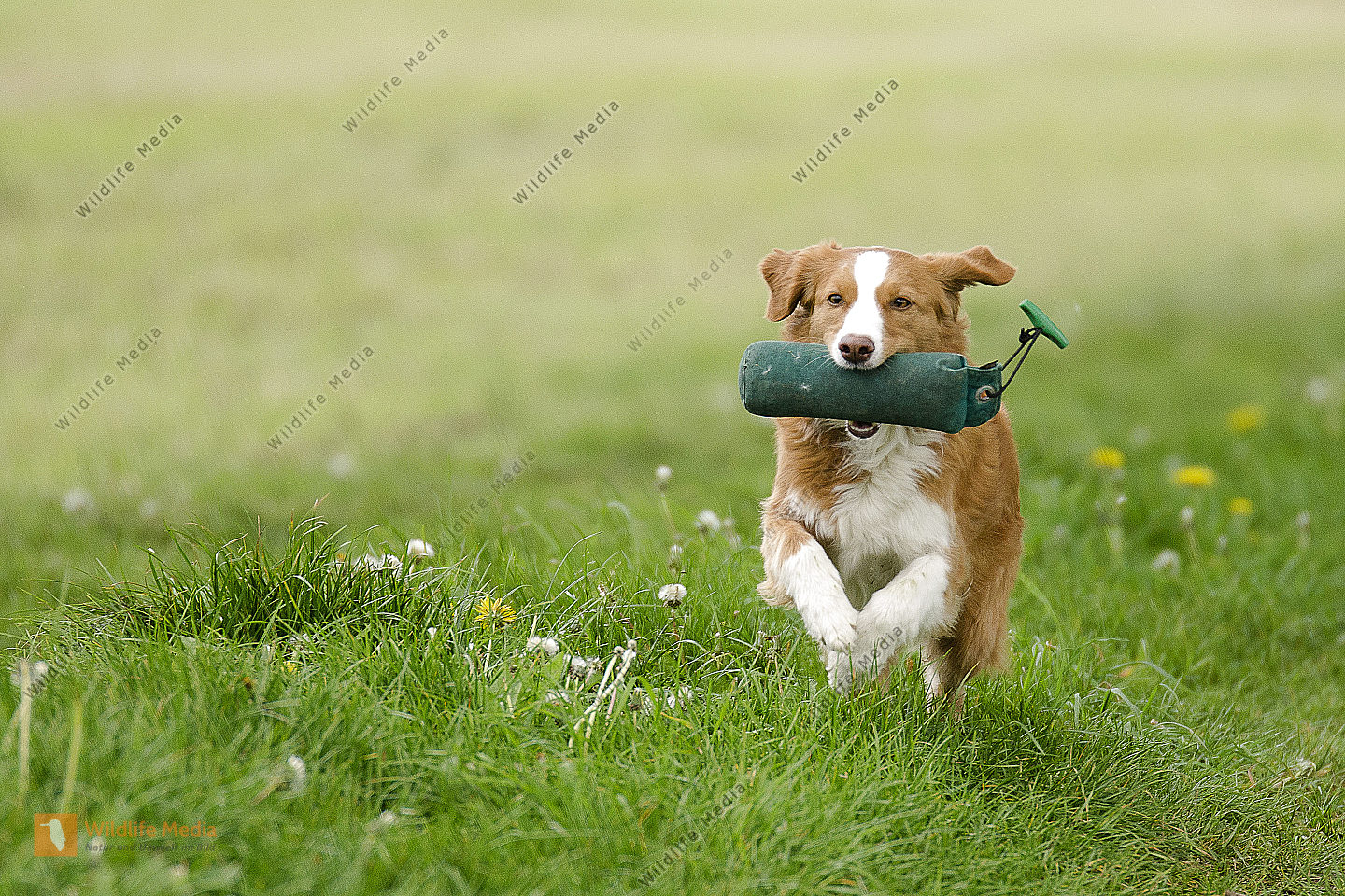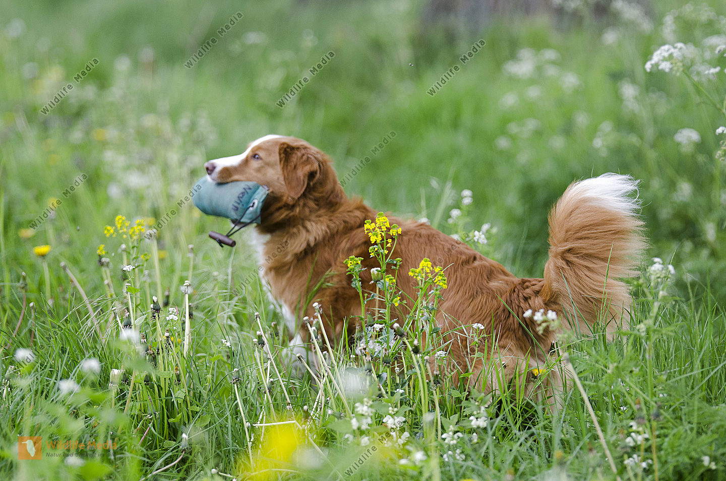 Nova-Scotia-Duck-Tolling-Retriever mit Dummy