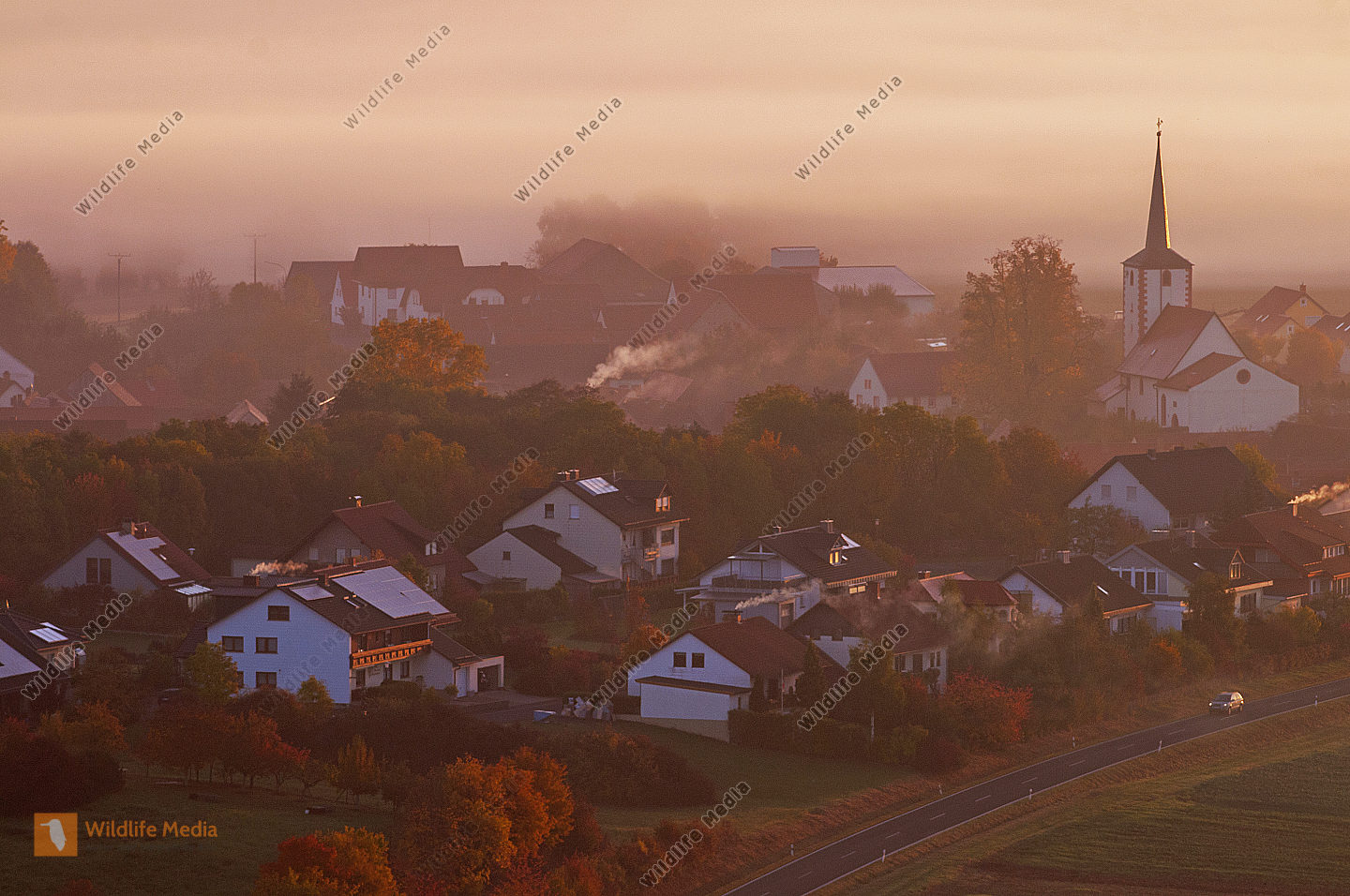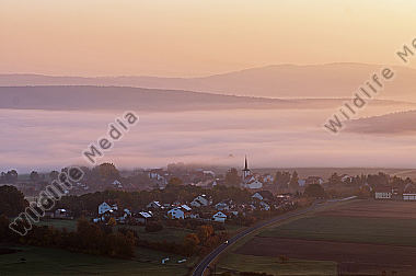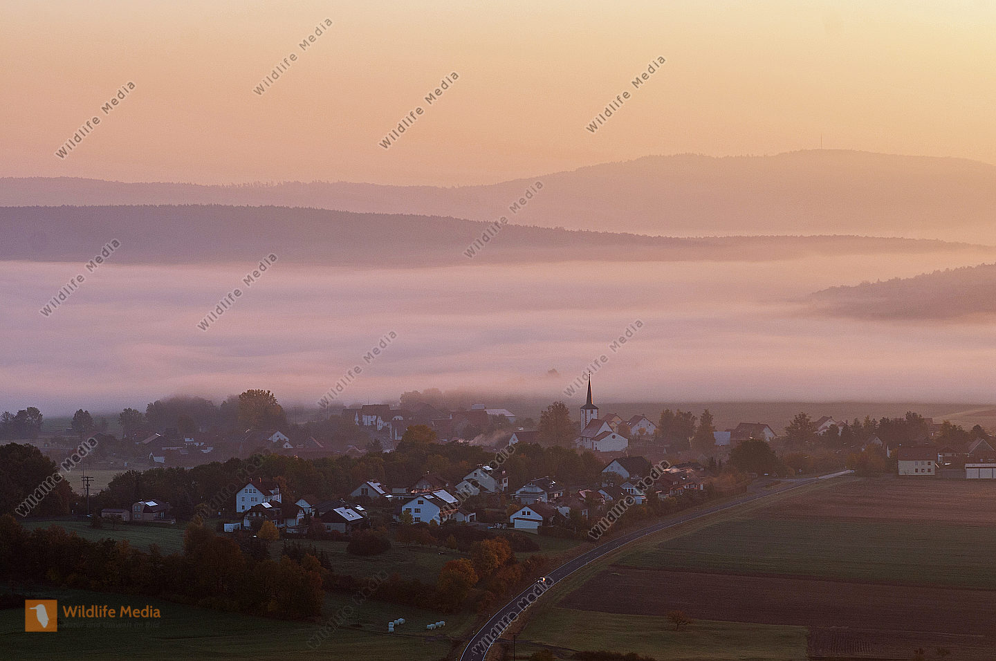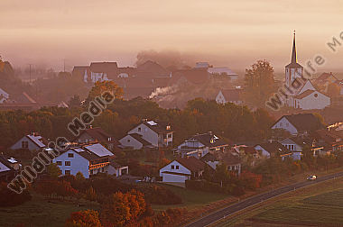 Blick auf Oberelsbach/Rhön bei Sonnenaufgang
