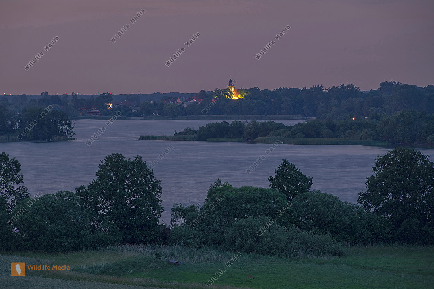 Blick über den Grossen See auf Fürstenwerder am Abend