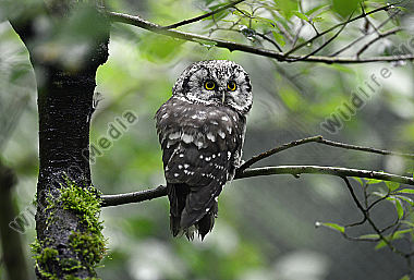Rauhfußkauz Aegolius funereus Großaufnahme