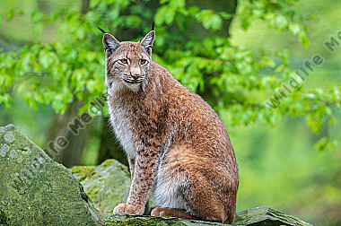Eurasischer Luchs Lynx lynx auf einem Felsen