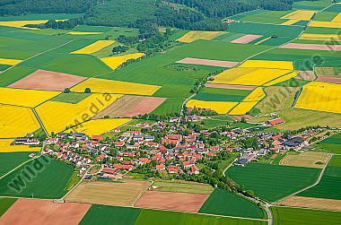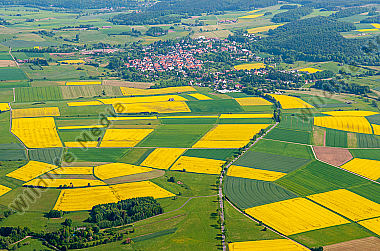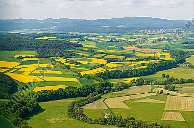 Landschaft mit Rapsfeldern in Nordhessen Luftaufnahme
