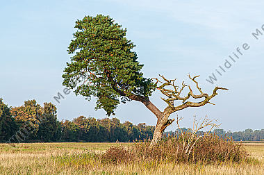 Blühende Heidelandschaft mit Heidschnuckenherde