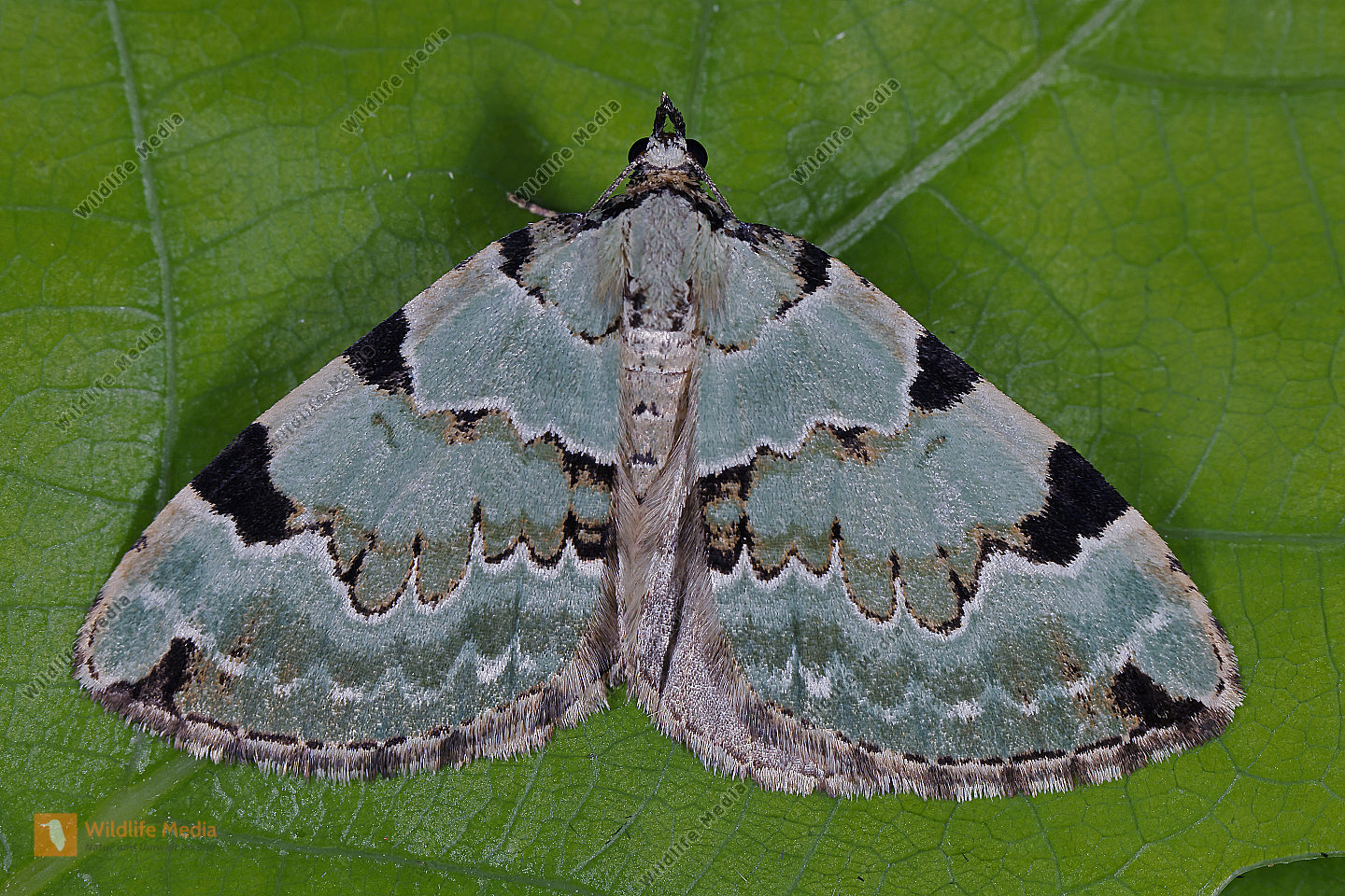 Schäfer mit Rhönschafherde Ovis aries zieht durch den Wald