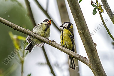 Junge Kohlmeise wartet auf Futter