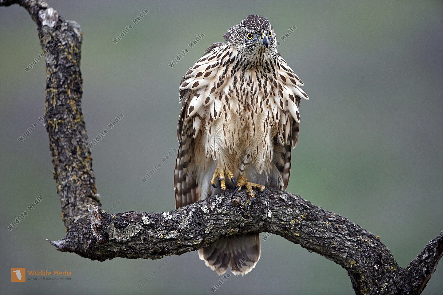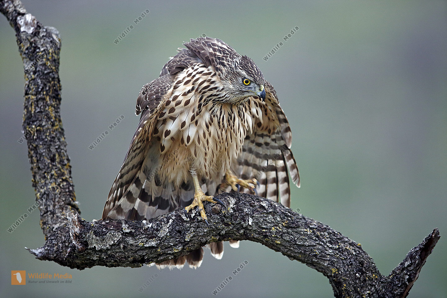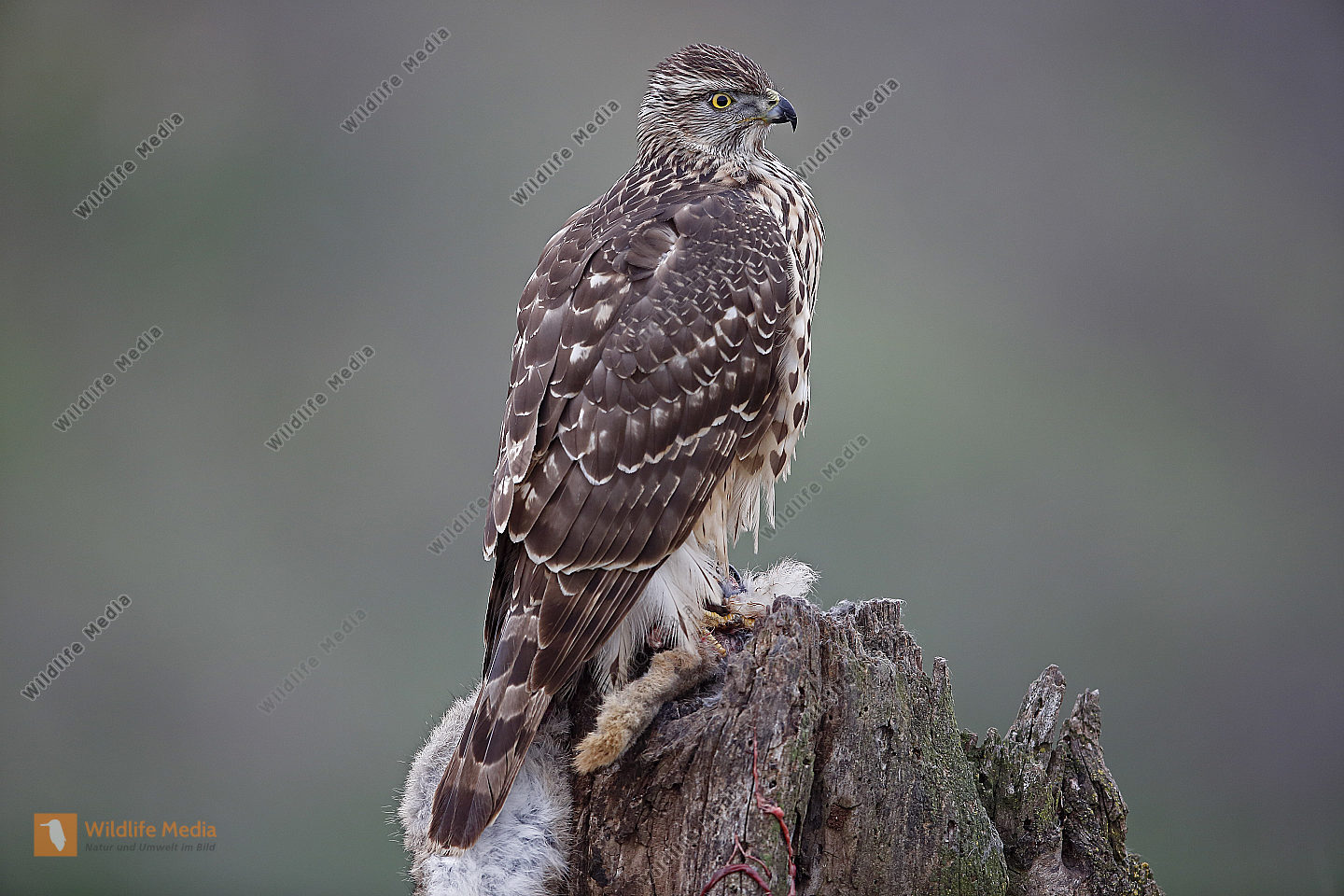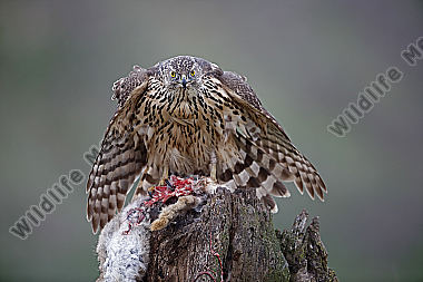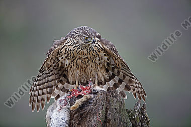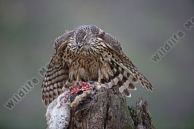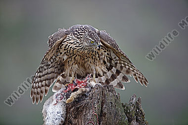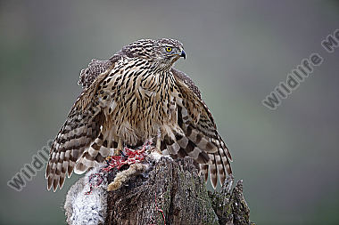 Habichtskauz Weibchen mit Junge in Naturhöhle