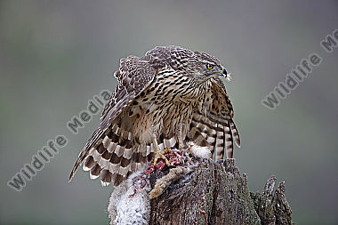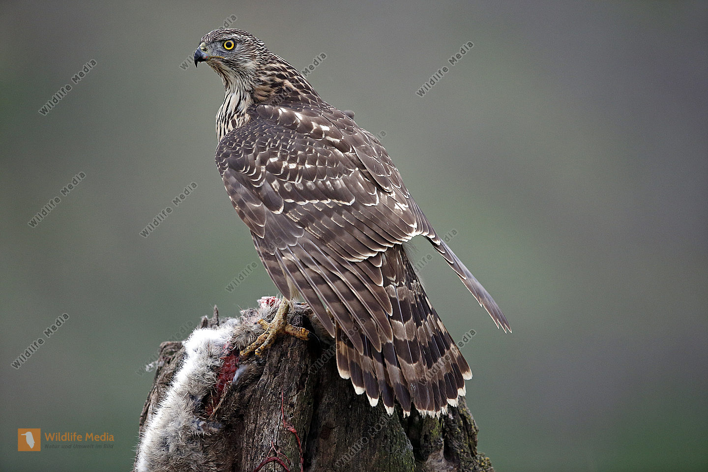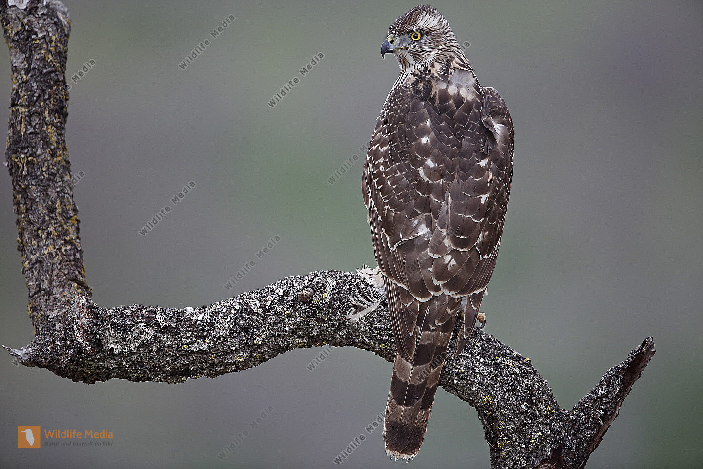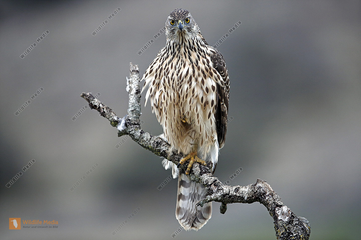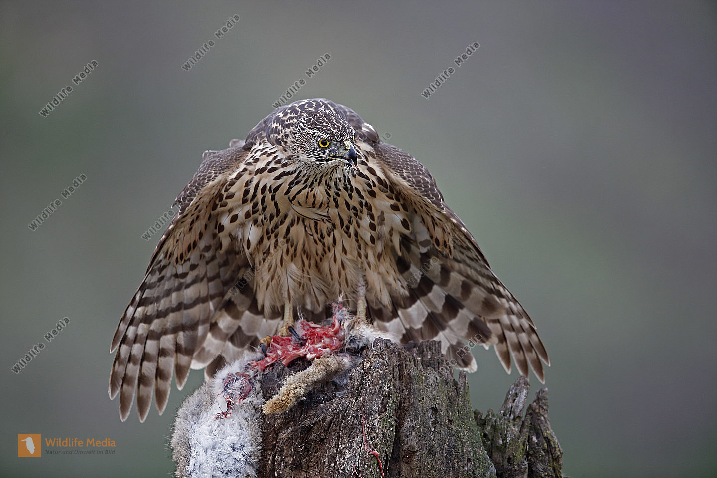 Habichtskauz Weibchen mit Junge in Naturhöhle