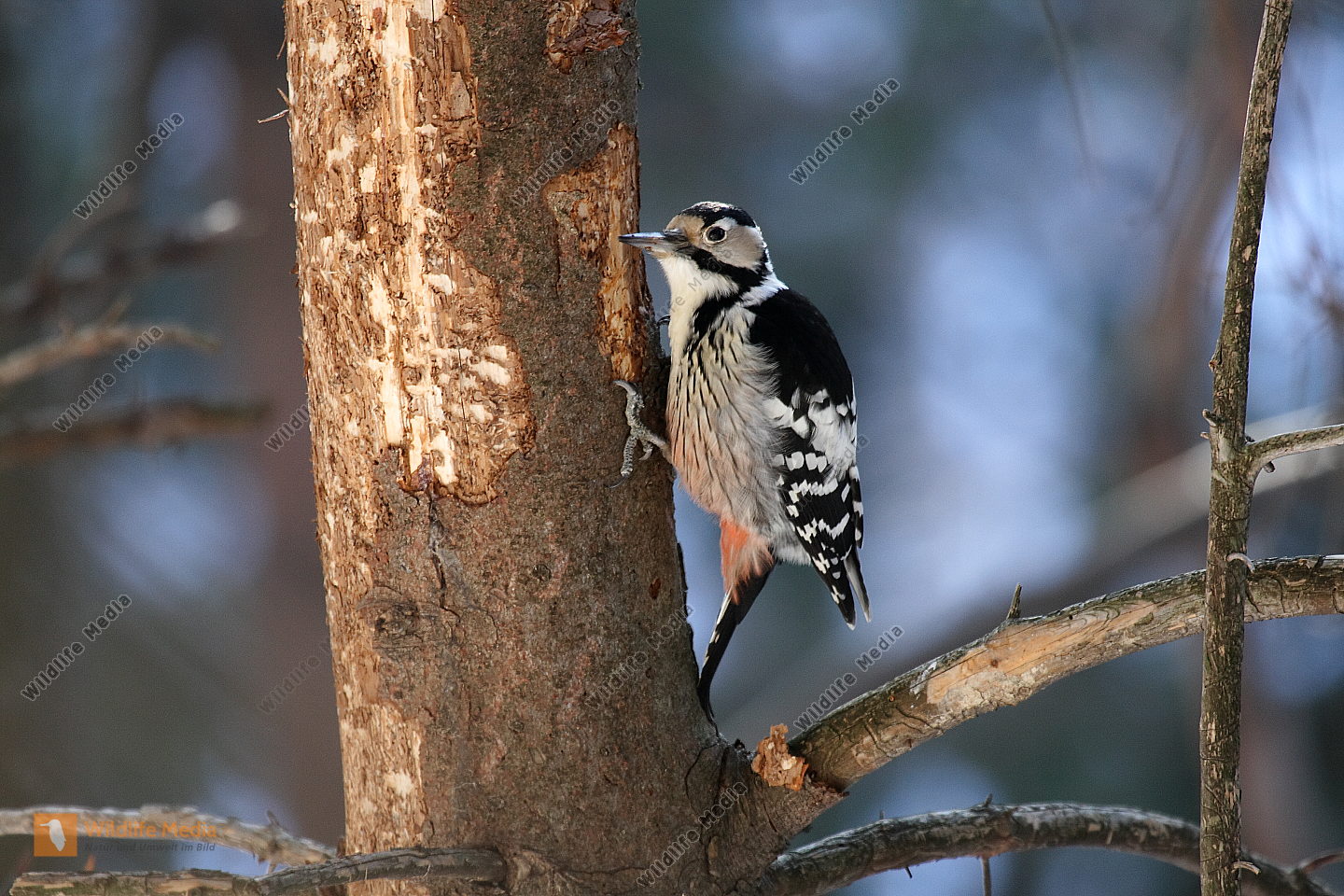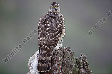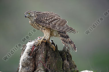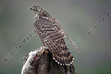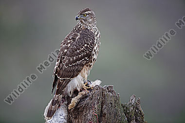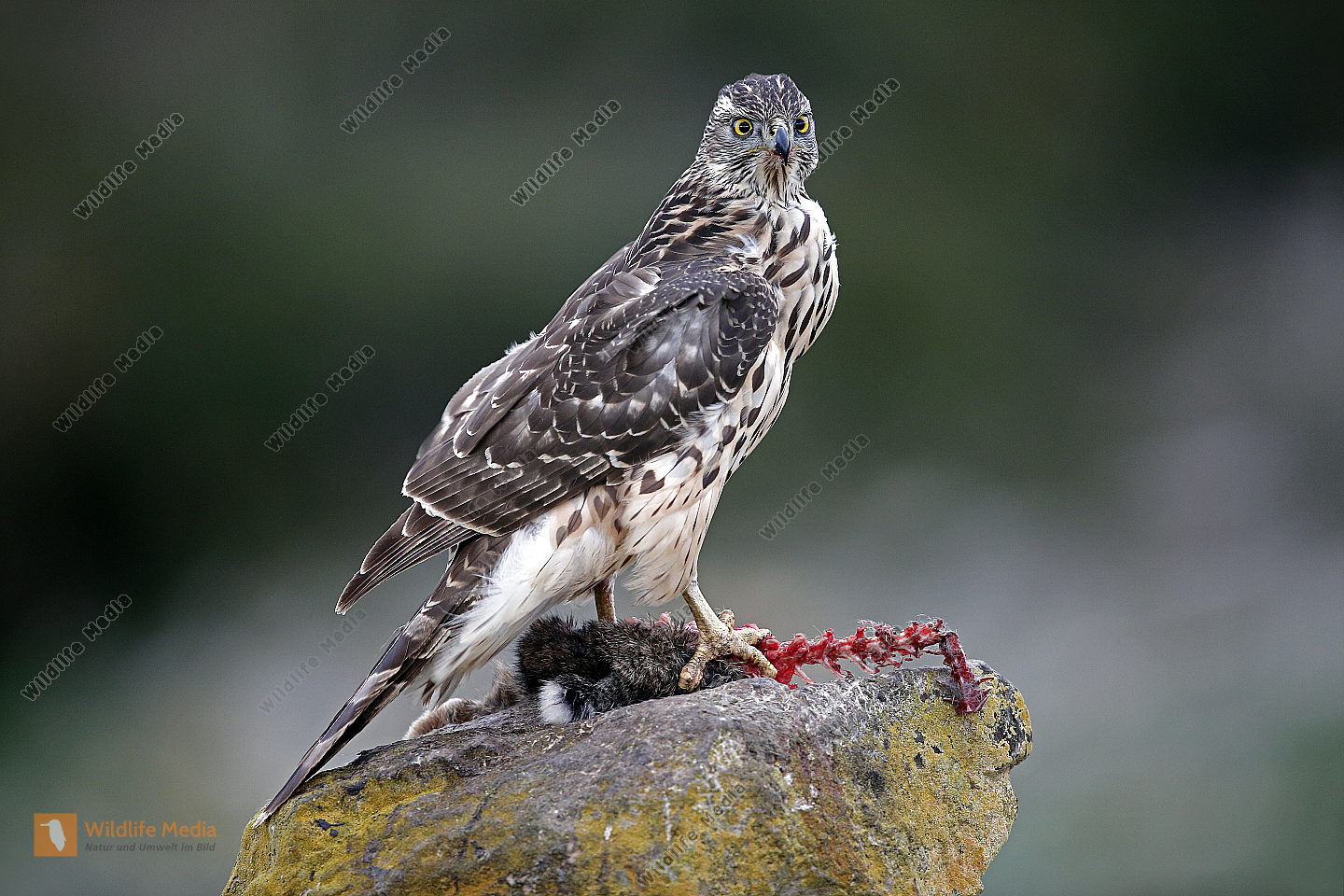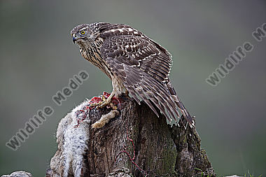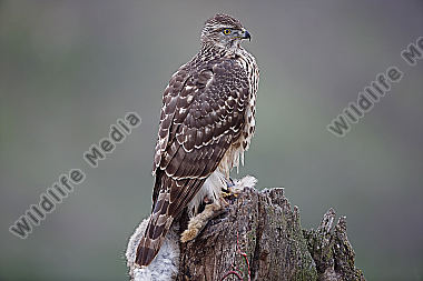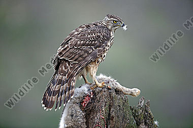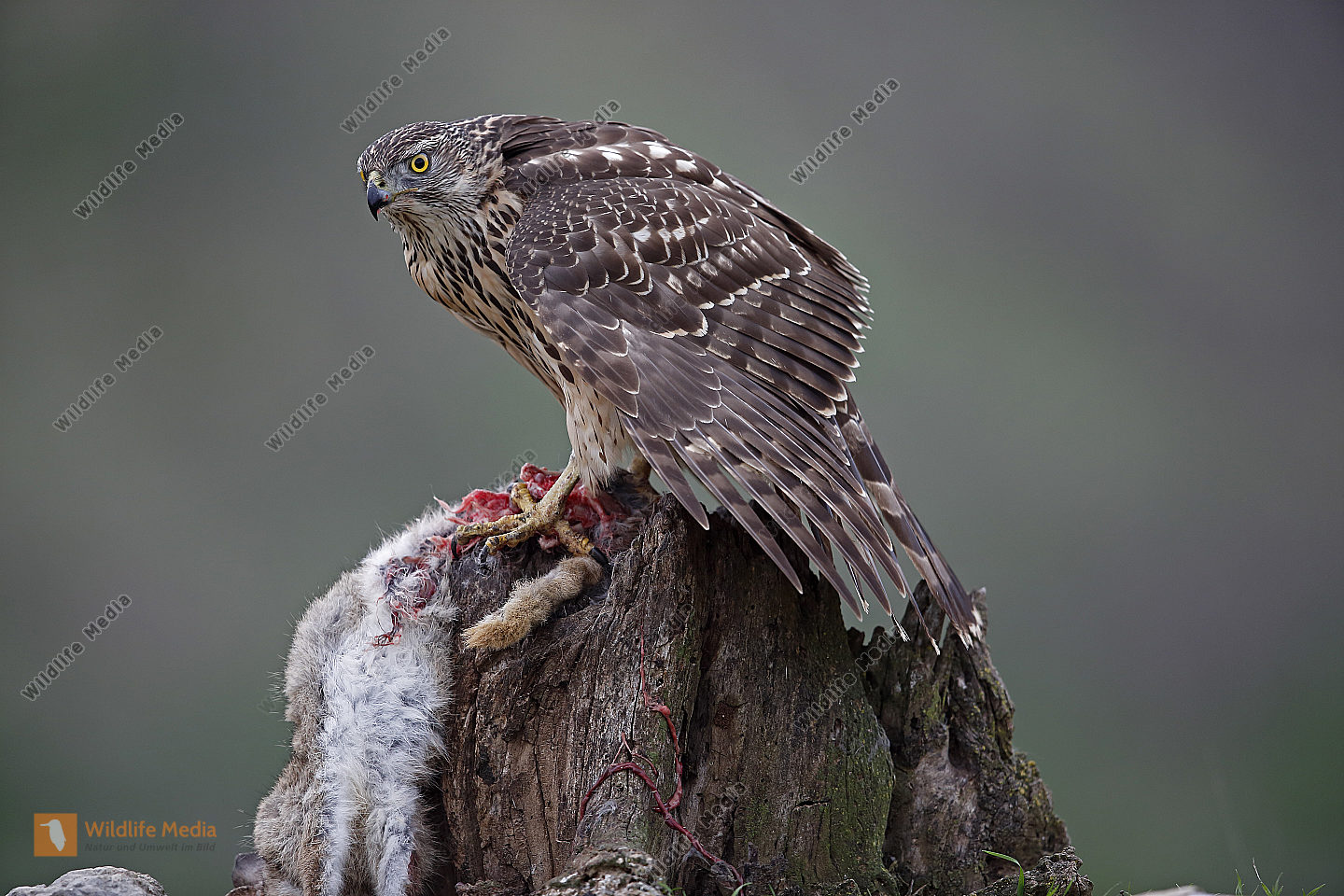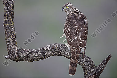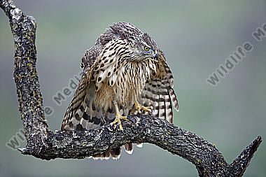 Habichtskauz Weibchen mit Junge in Naturhöhle