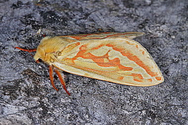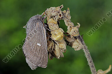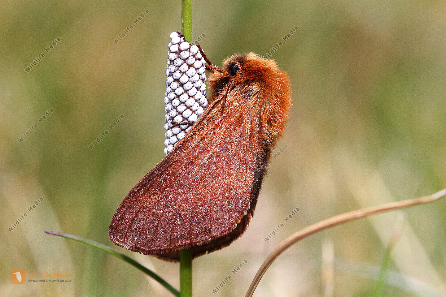Wolfsmilch-Ringelspinner Weibchen bei der Eiablage