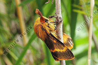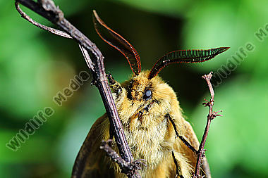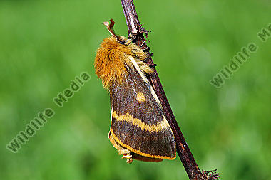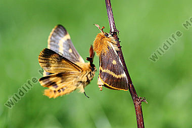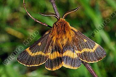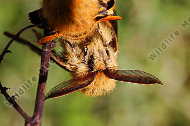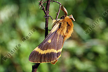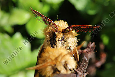 Herbstspinner Weibchen mit anfliegenden Männchen