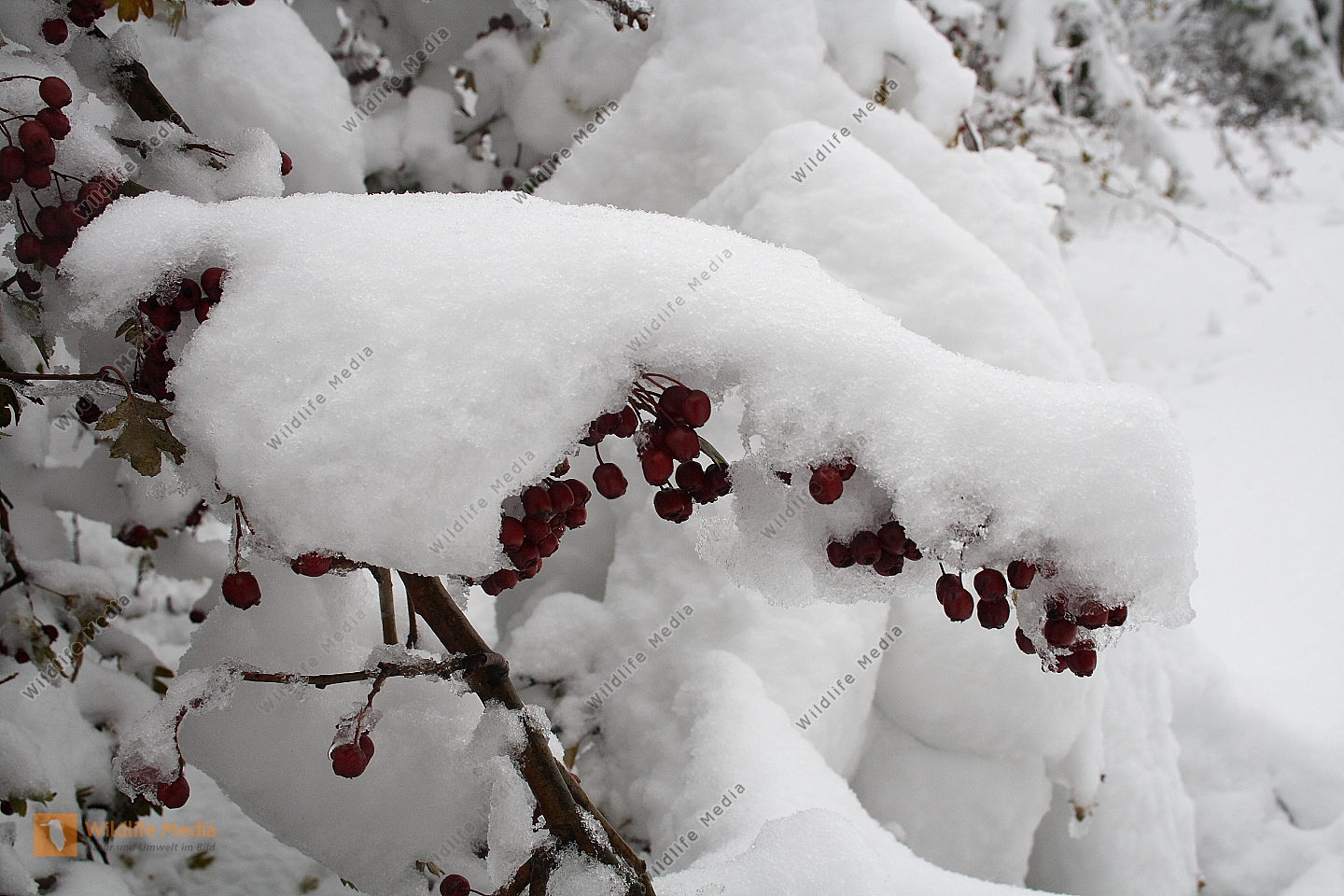 Weißdorn im Schnee