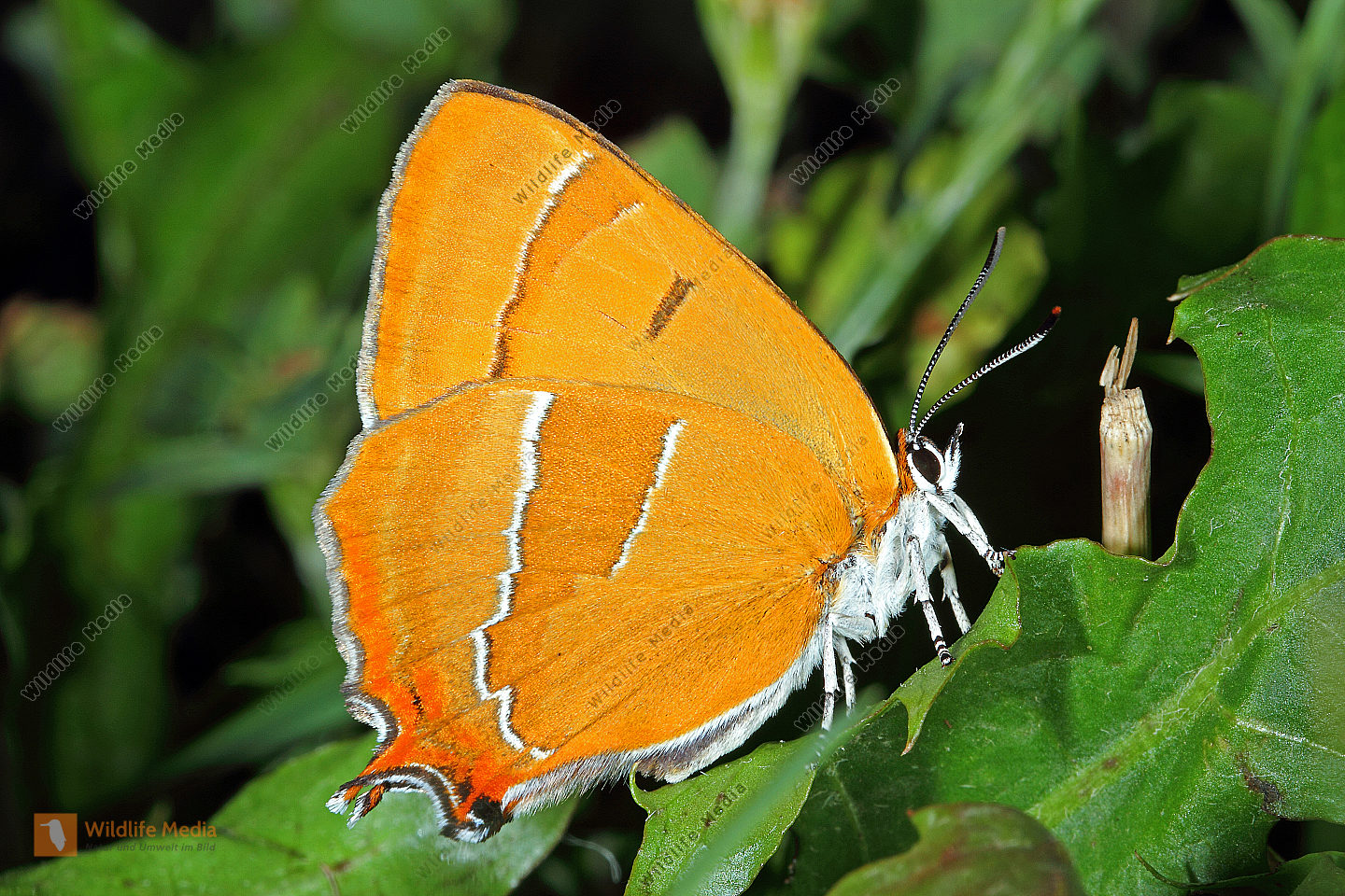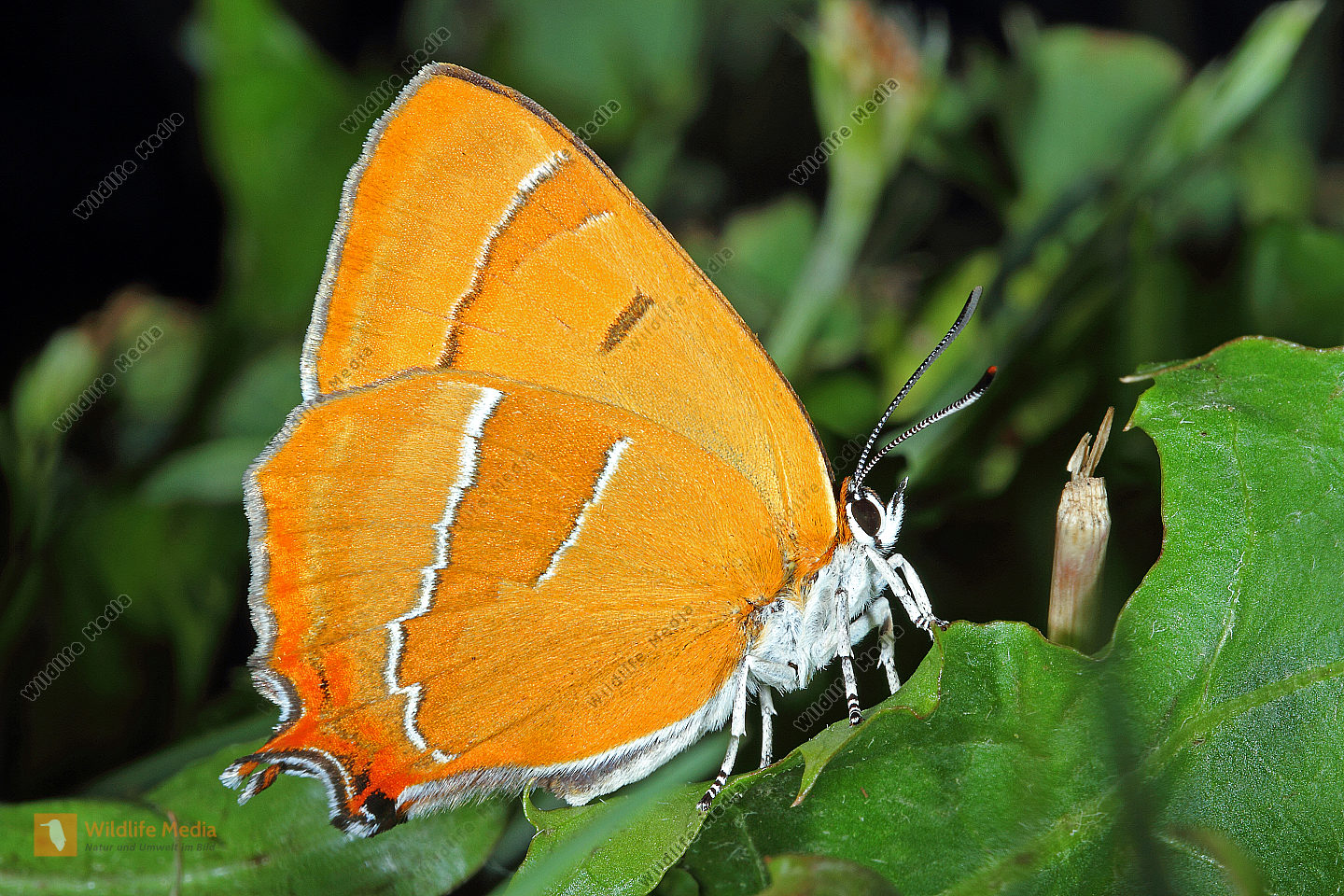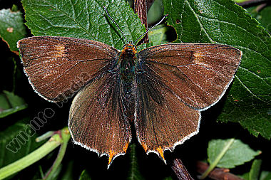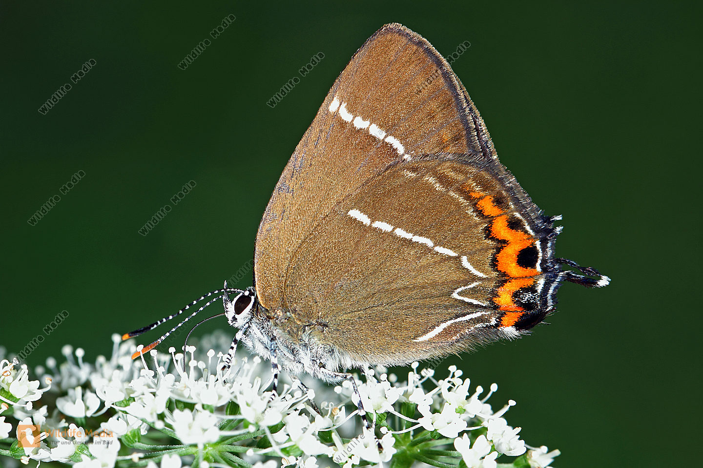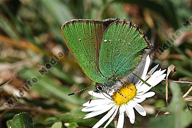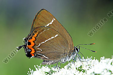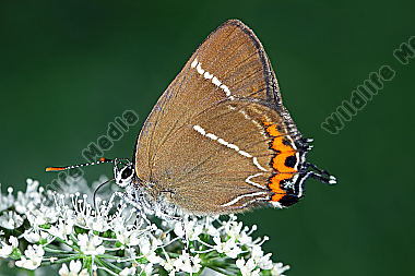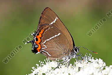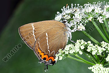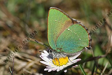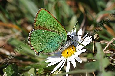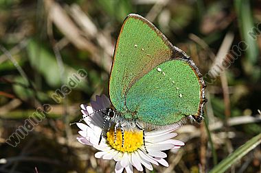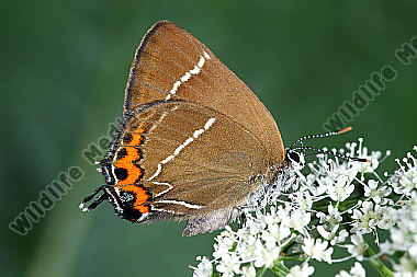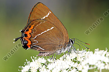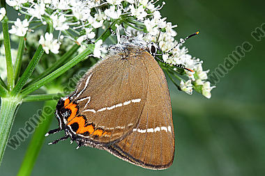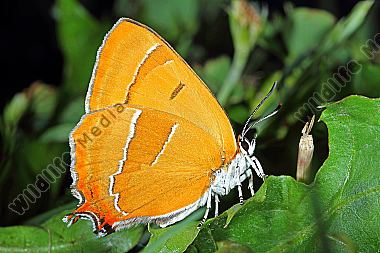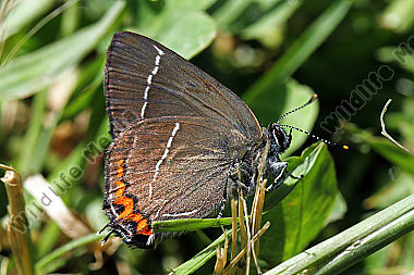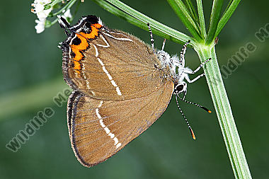 Ein Brombeerzipfelfalter ruht auf einer Hecke