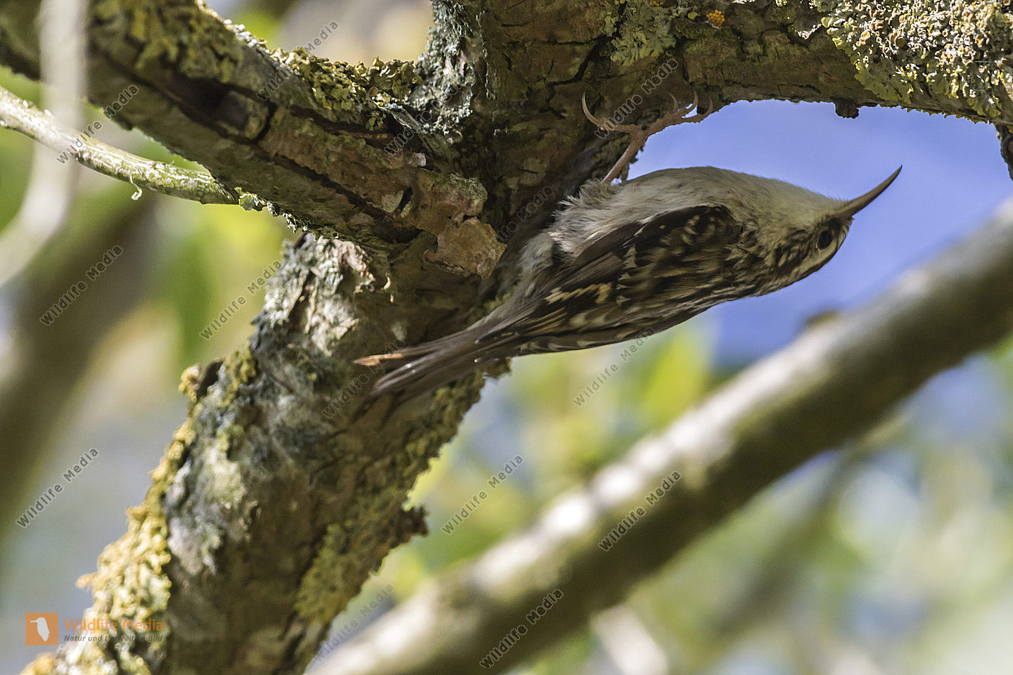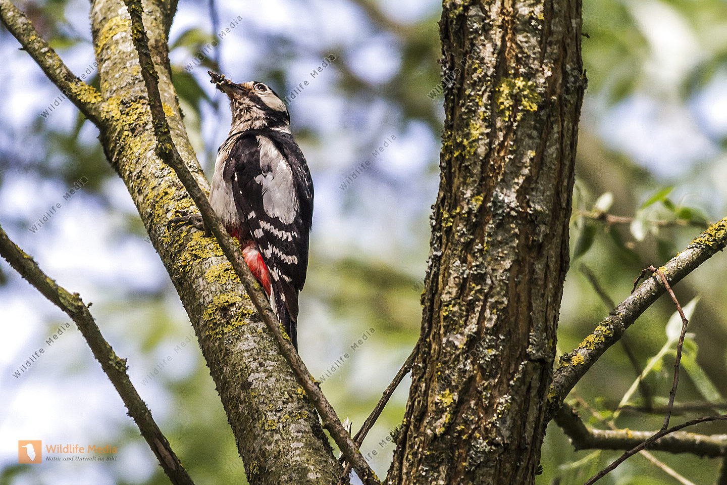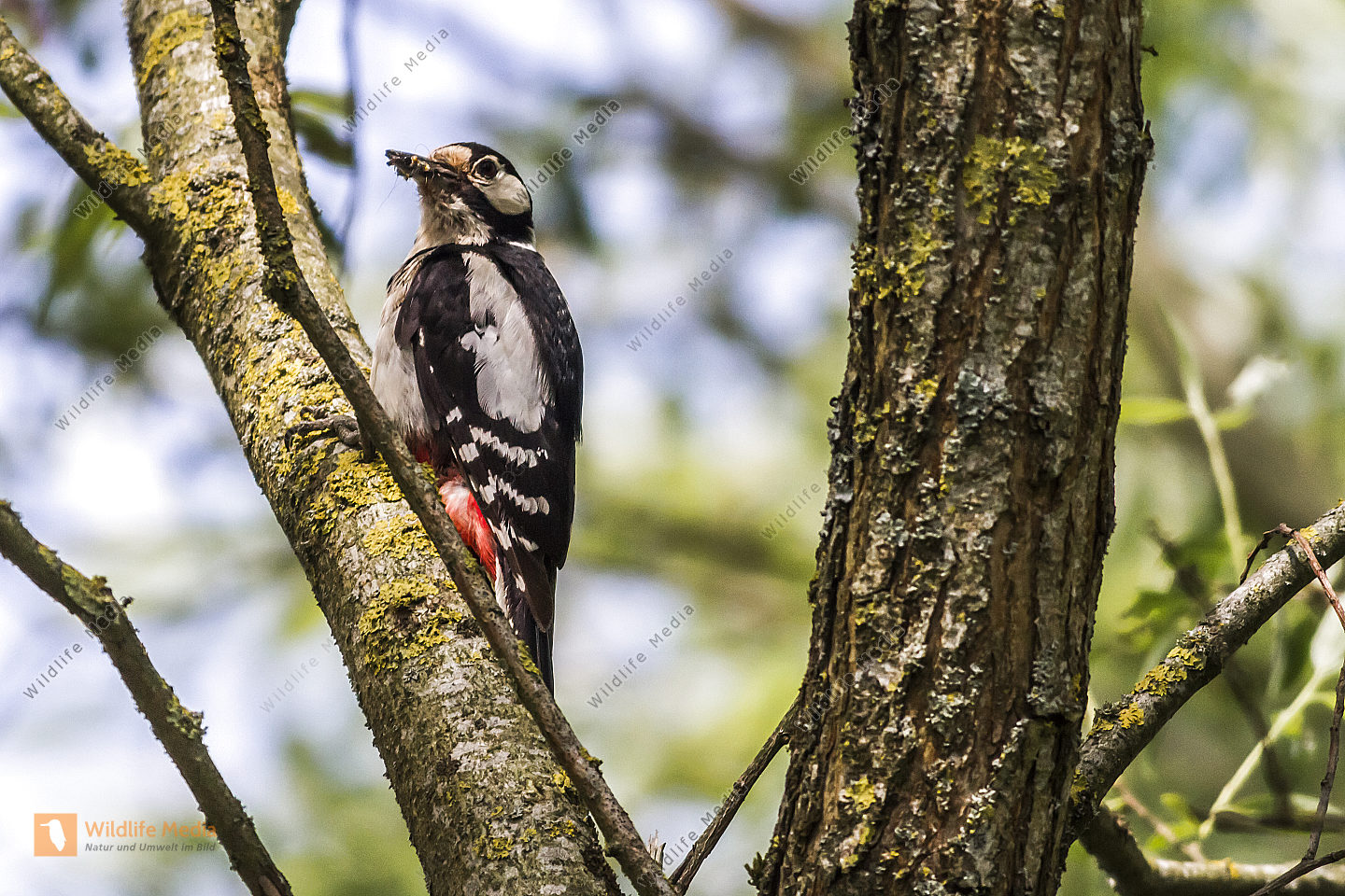 Ein Kleinspecht auf Futtersuche am Baumstamm