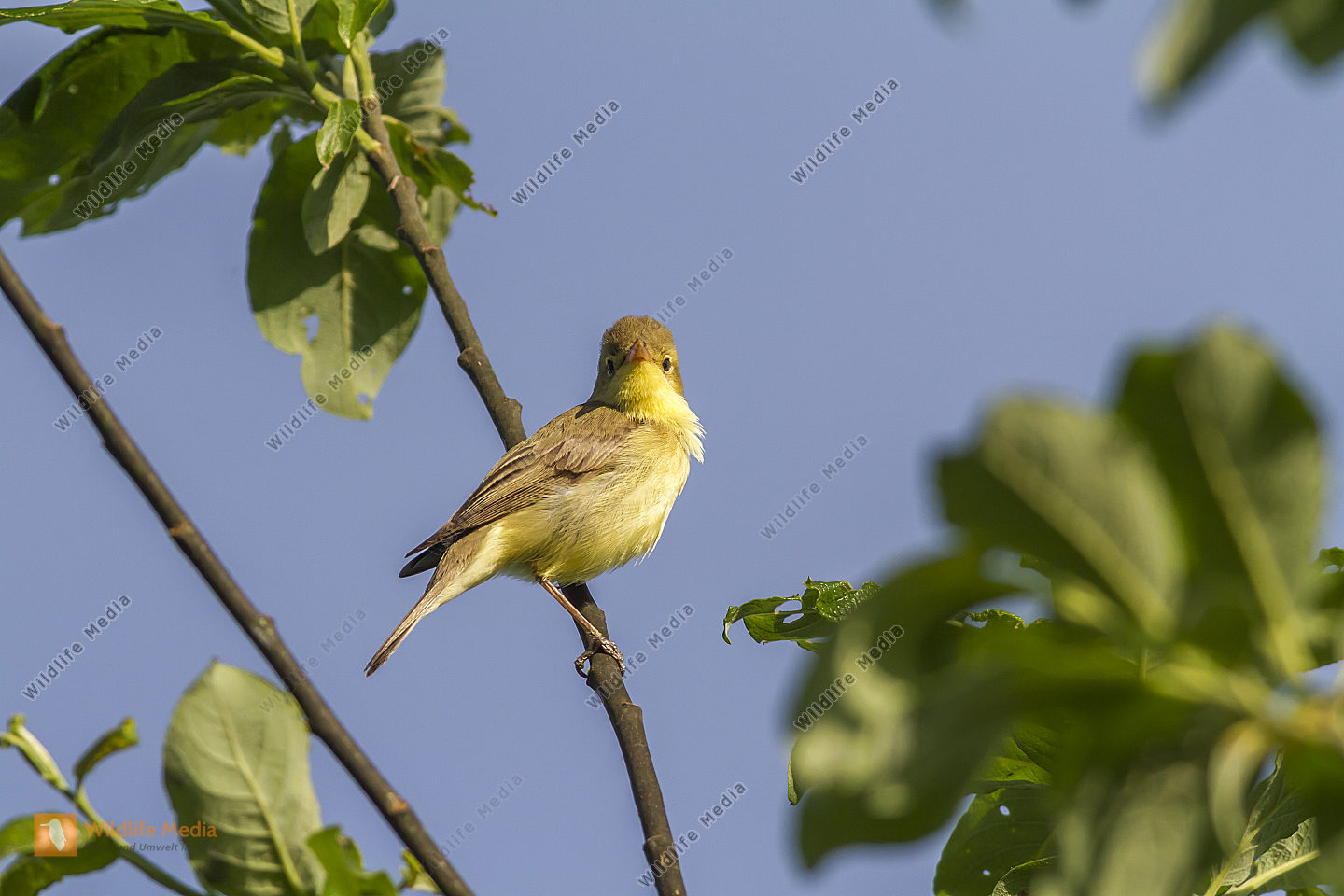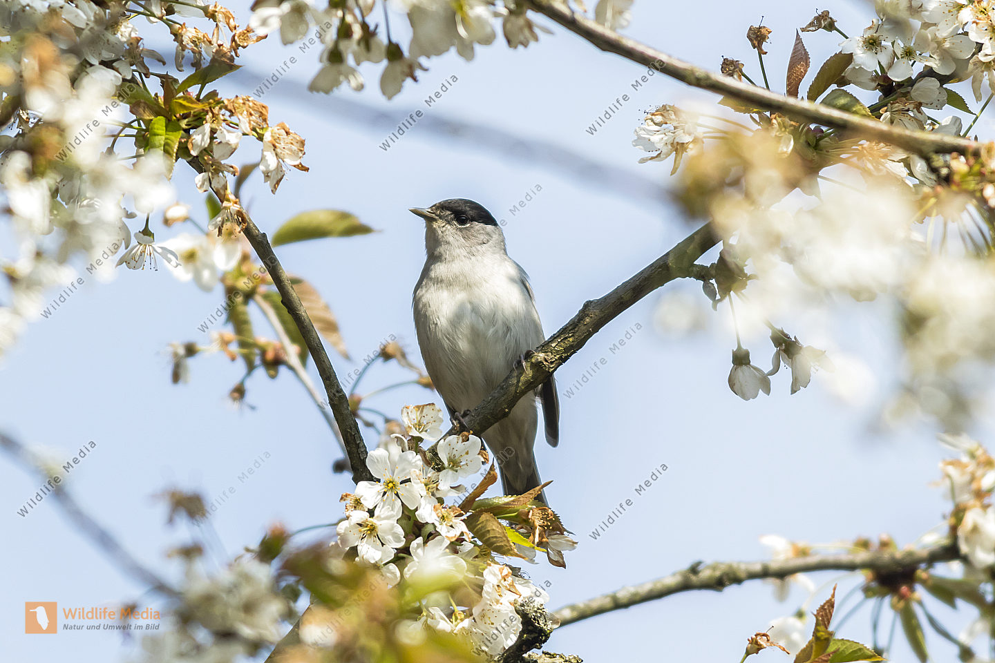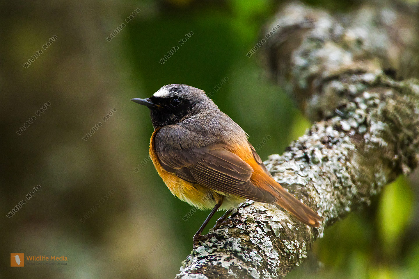 Ein weißsterniges Blaukehlchen auf einem Ast.