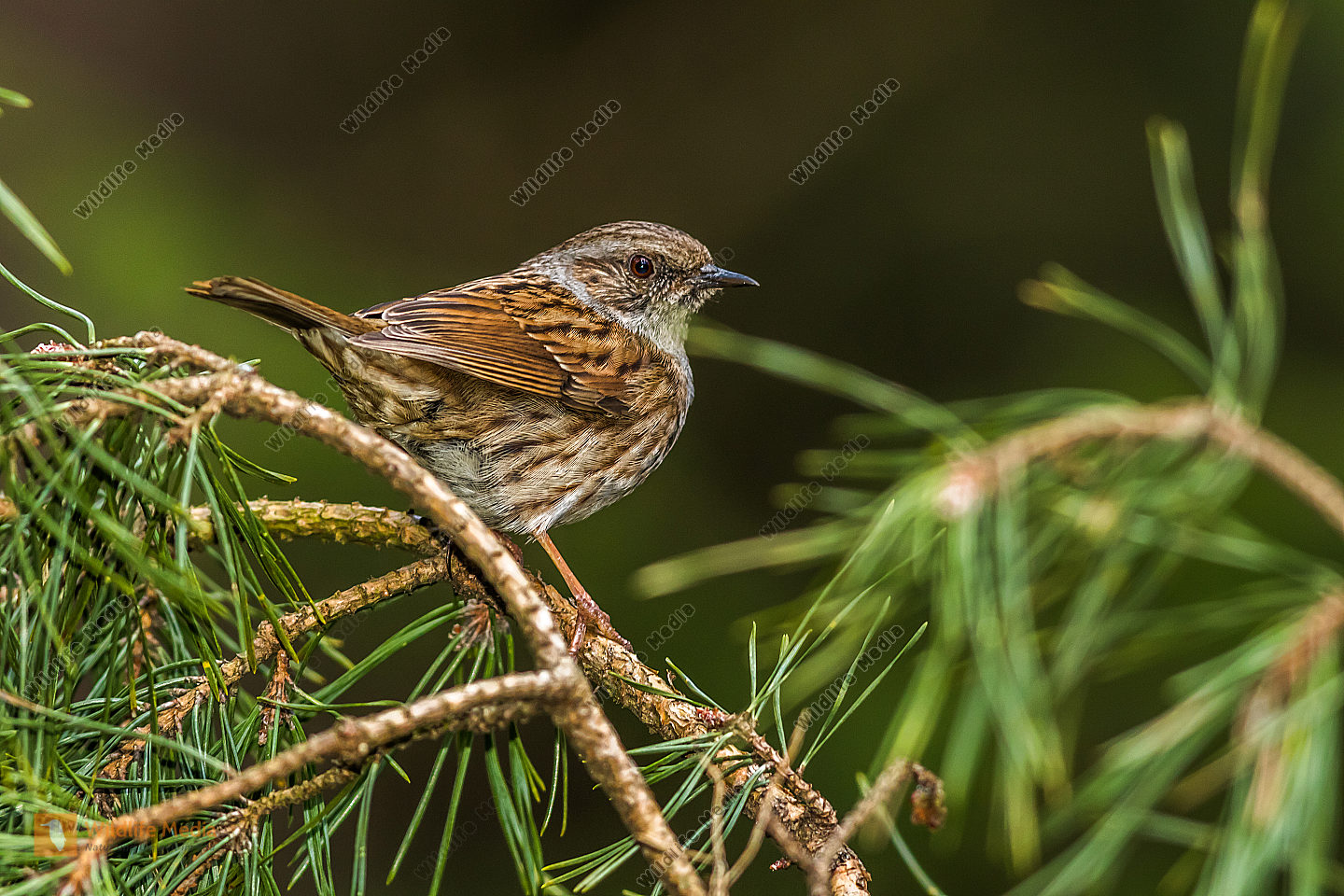 Ein Erlenzeisig pickt an der Erlenfrucht