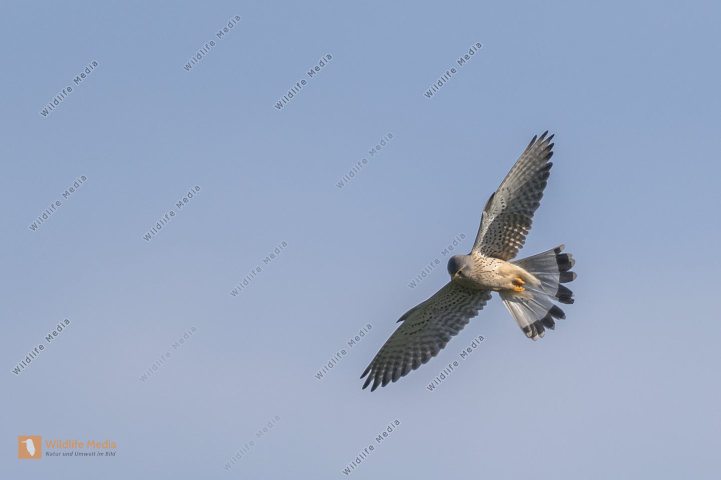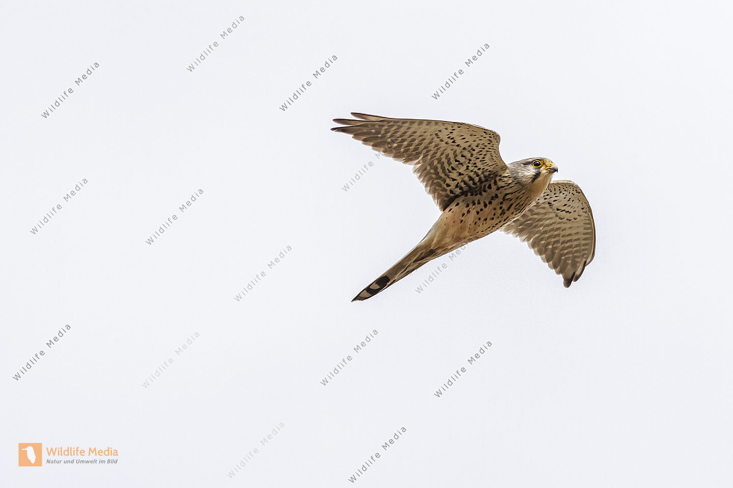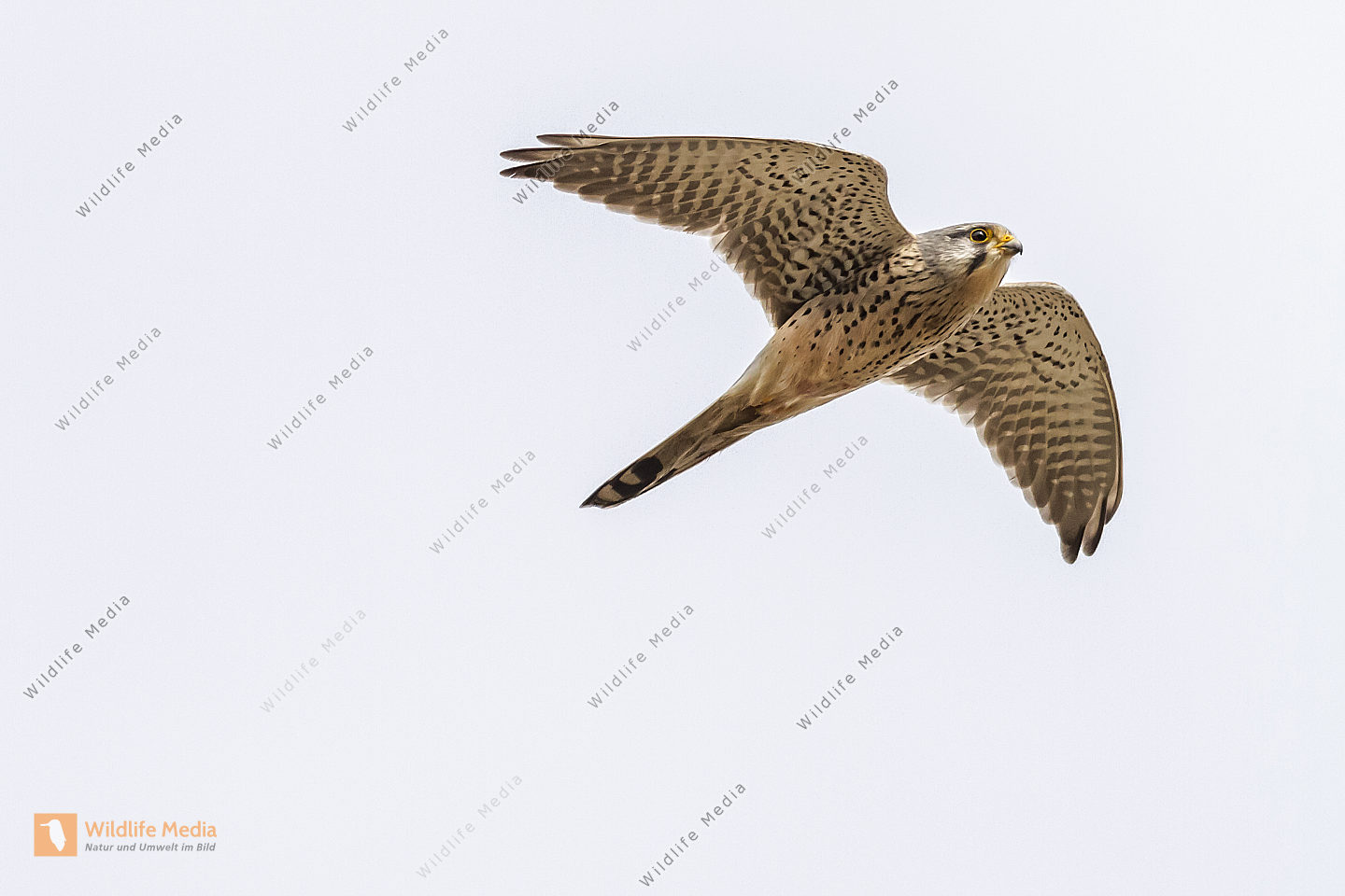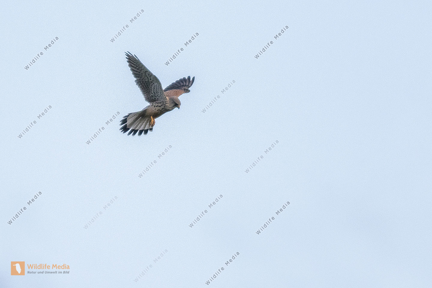 Ein fliegender Turmfalke auf der Suche nach Beute