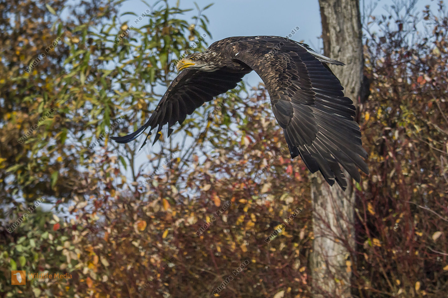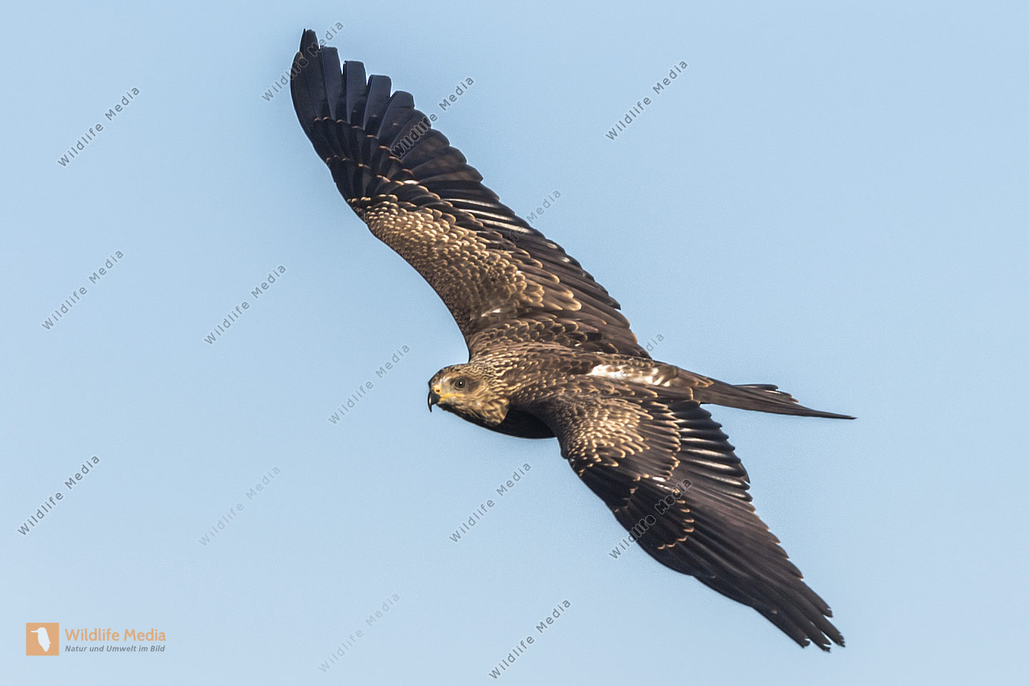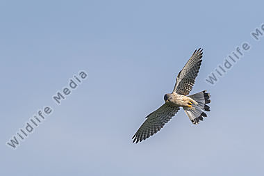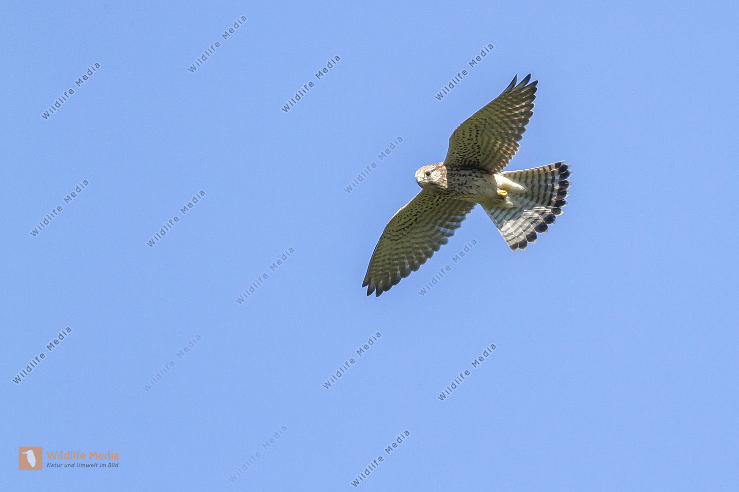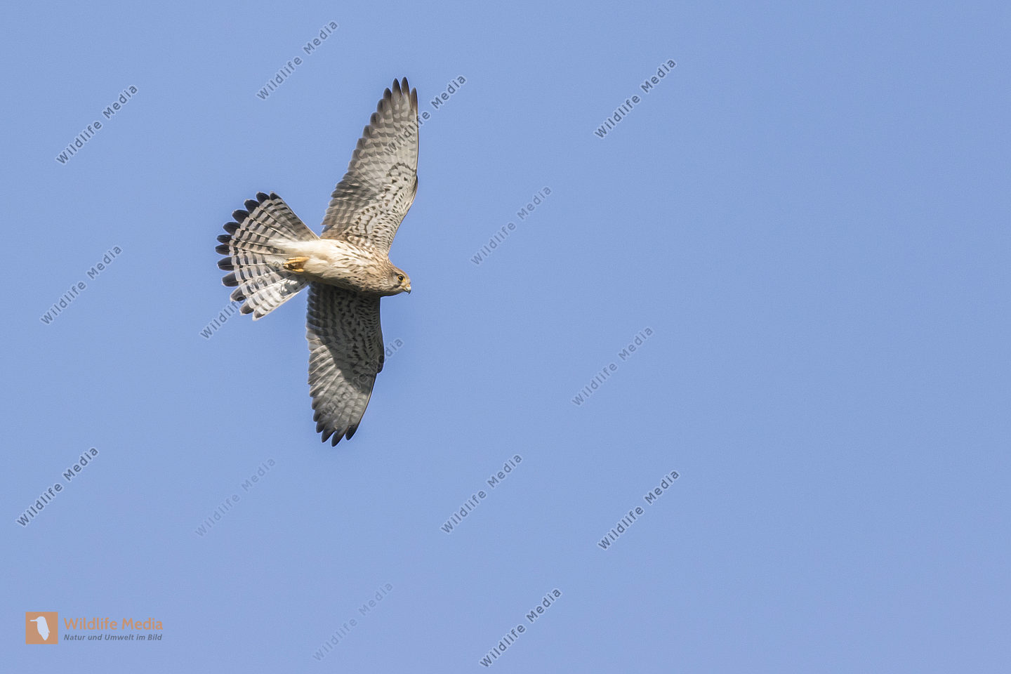 Ein fliegender Turmfalke auf der Suche nach Beute