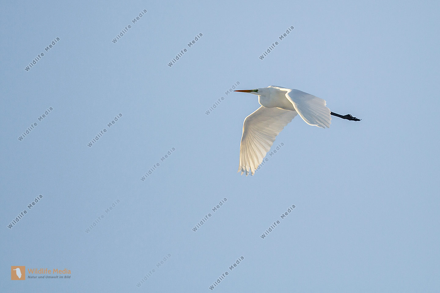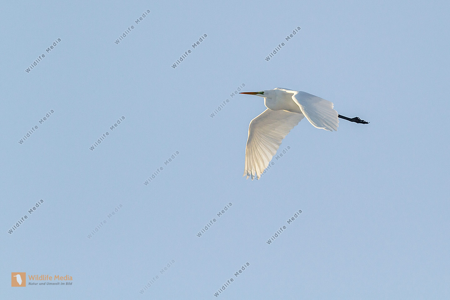 Ein Graureiher auf der Suche nach Nahrung im Beeder Bruch