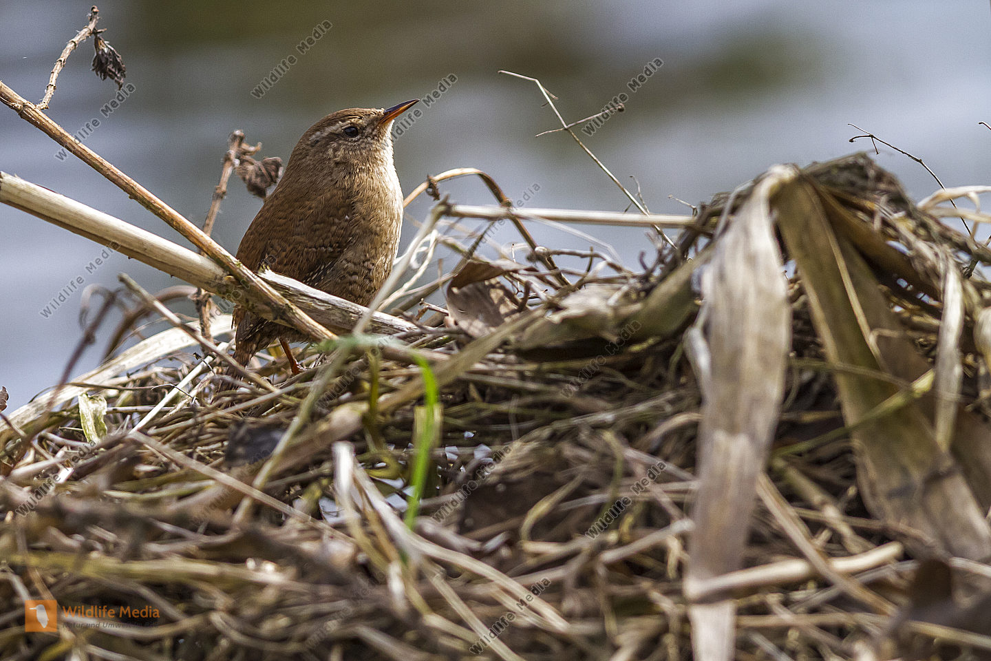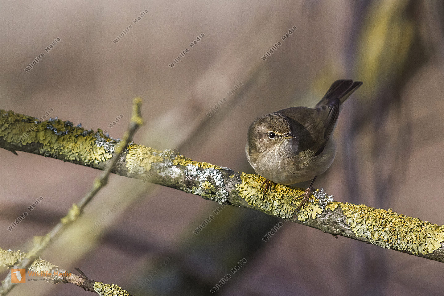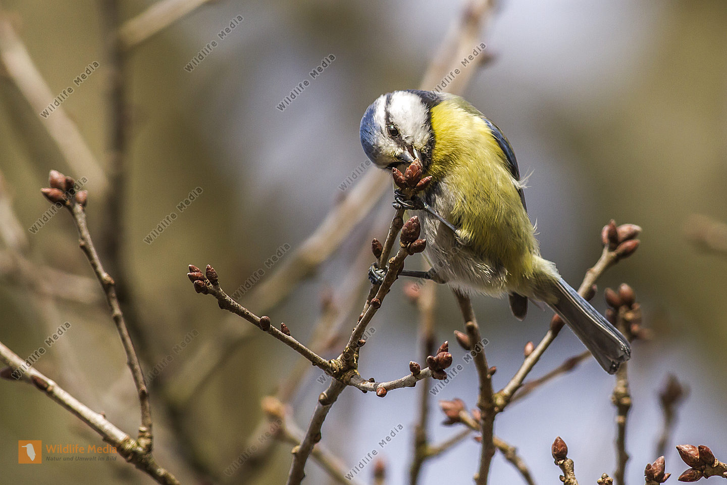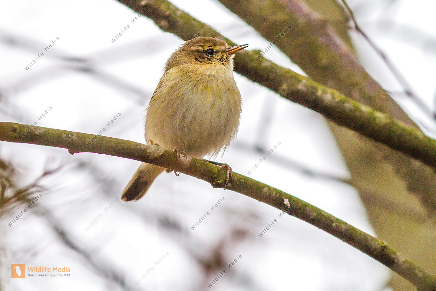 Ein Wintergoldhähnchen im Geäst eines Strauches