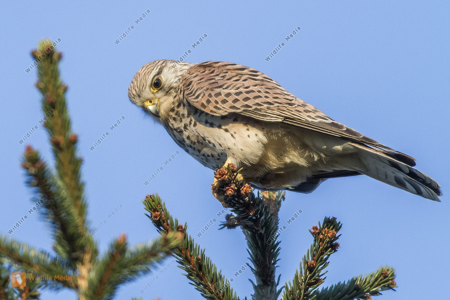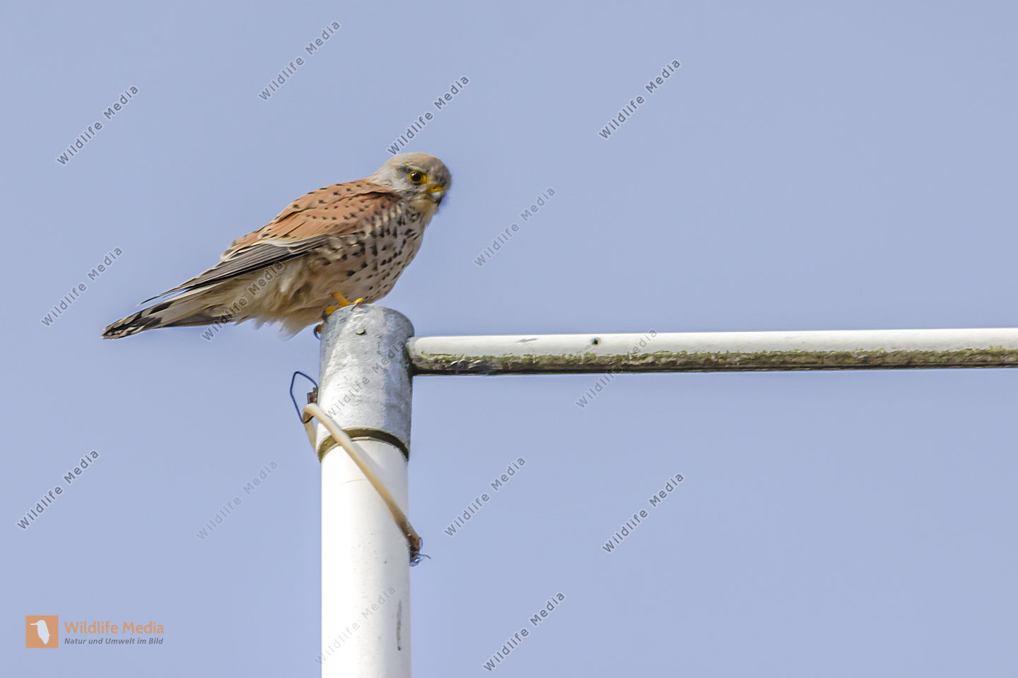 Ein Turmfalke sitzt auf seiner Warte und späht nach Beute
