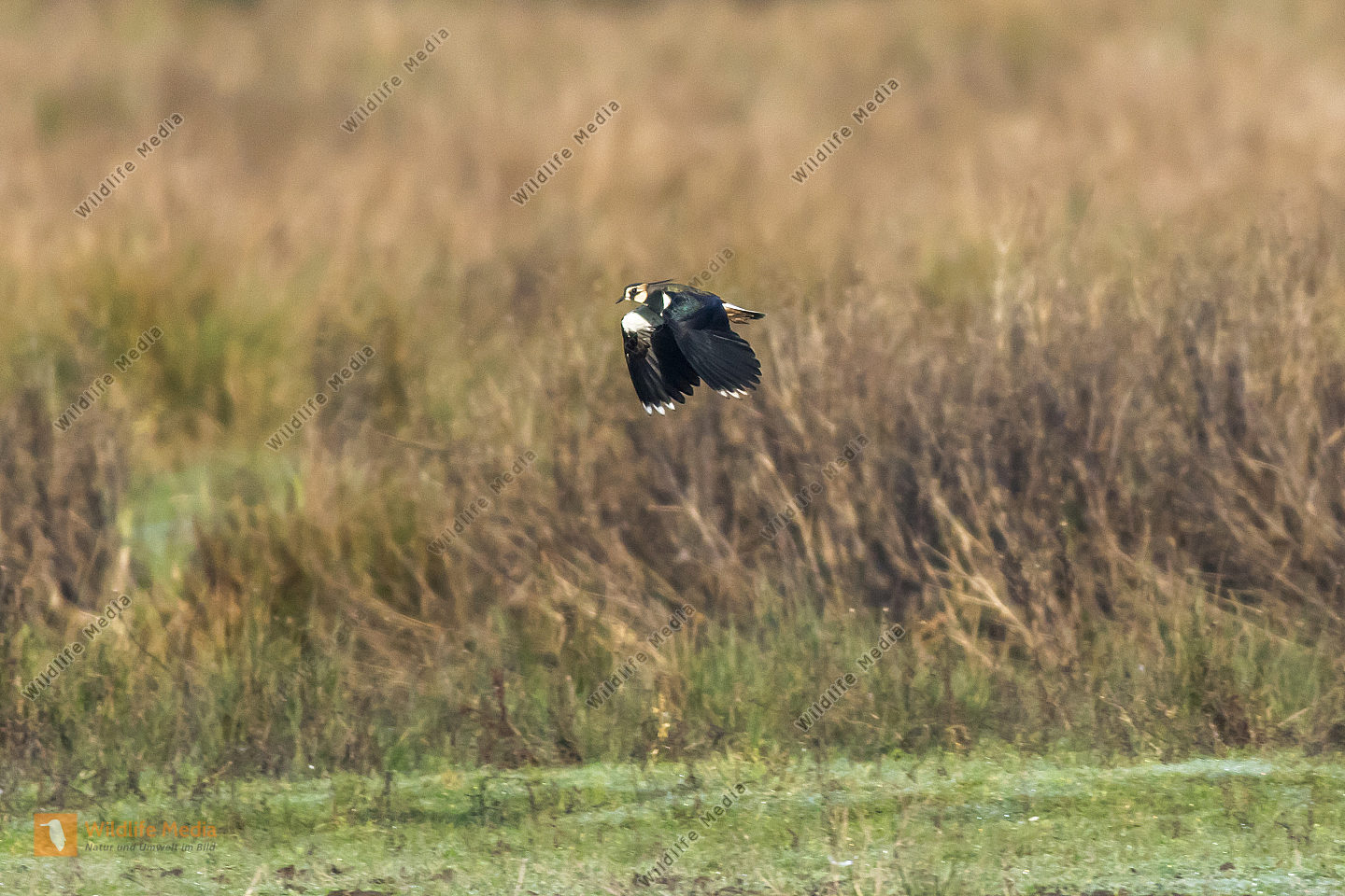 Ein Kiebitz im Beeder Bruch bei Homburg auf Nahrungssuche