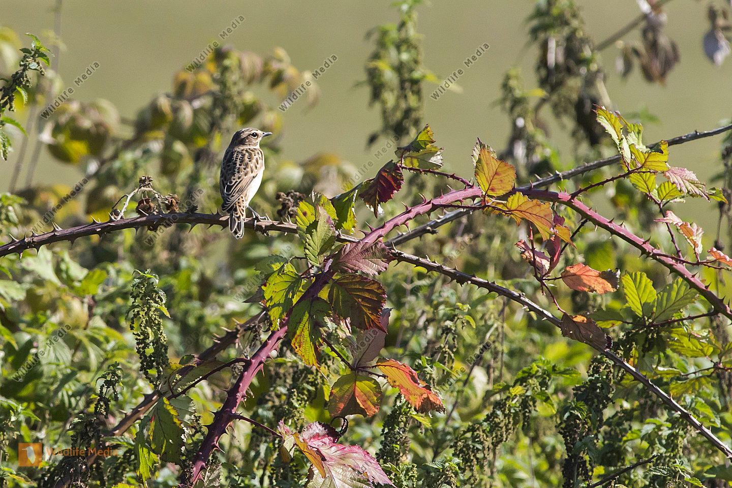 Junges Schwarzkehlchen sitzt auf einem Ast.
