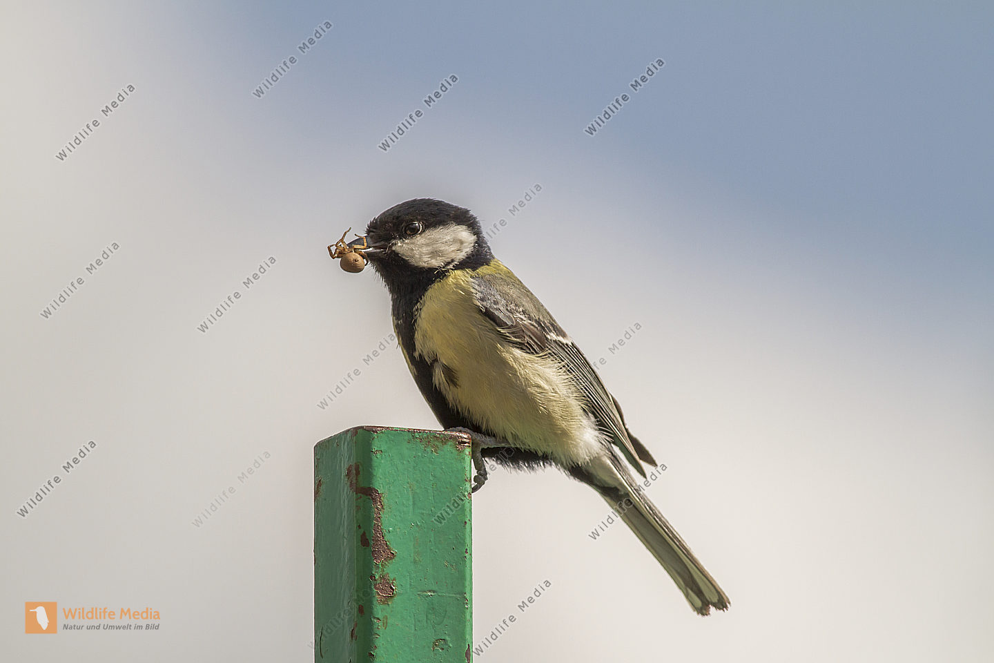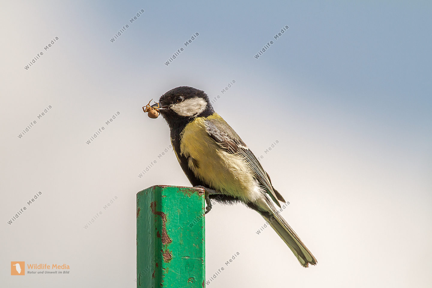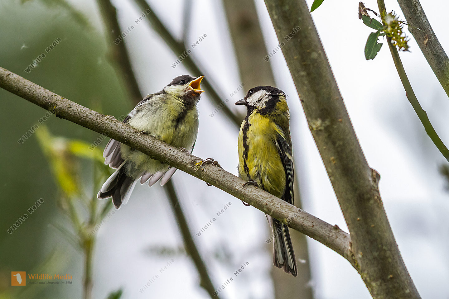 Eine Kohlmeise sitzt auf einem Ast
