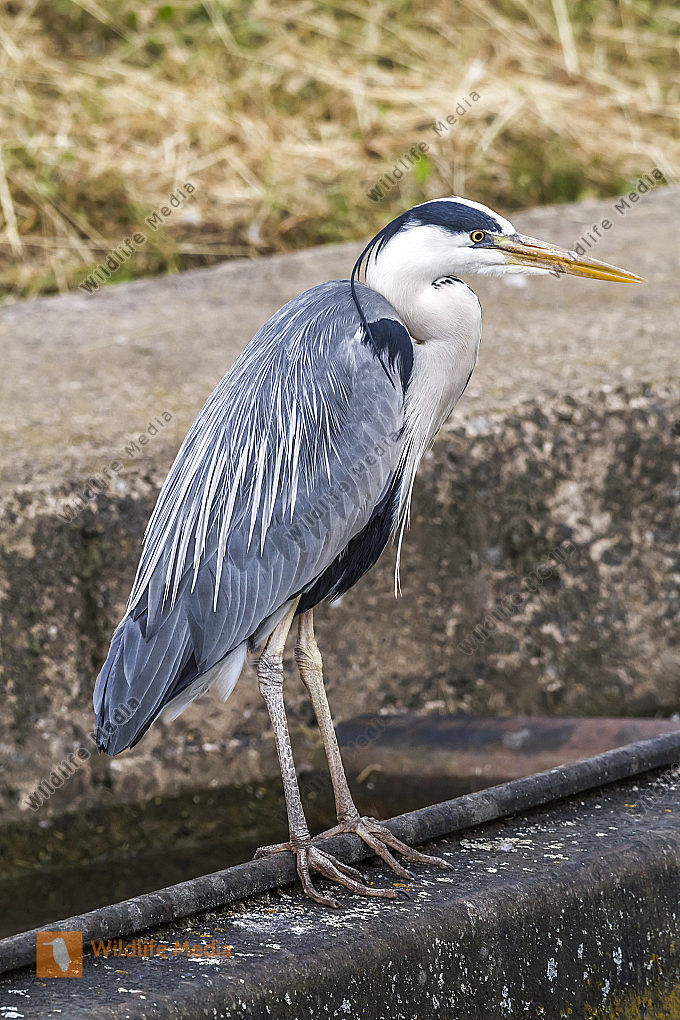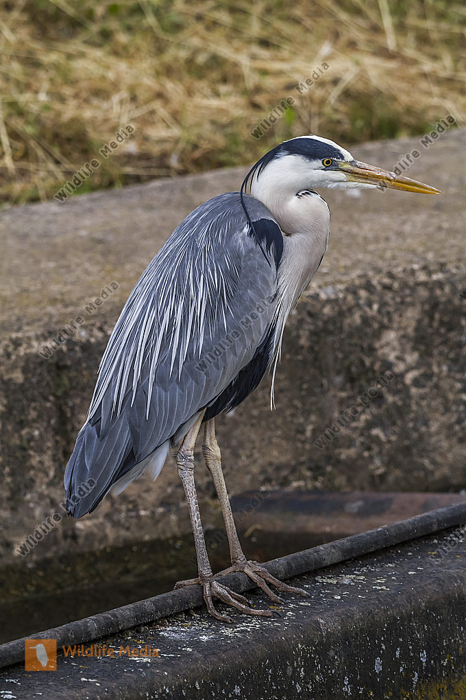 Ein Graureiher späht nach Beute