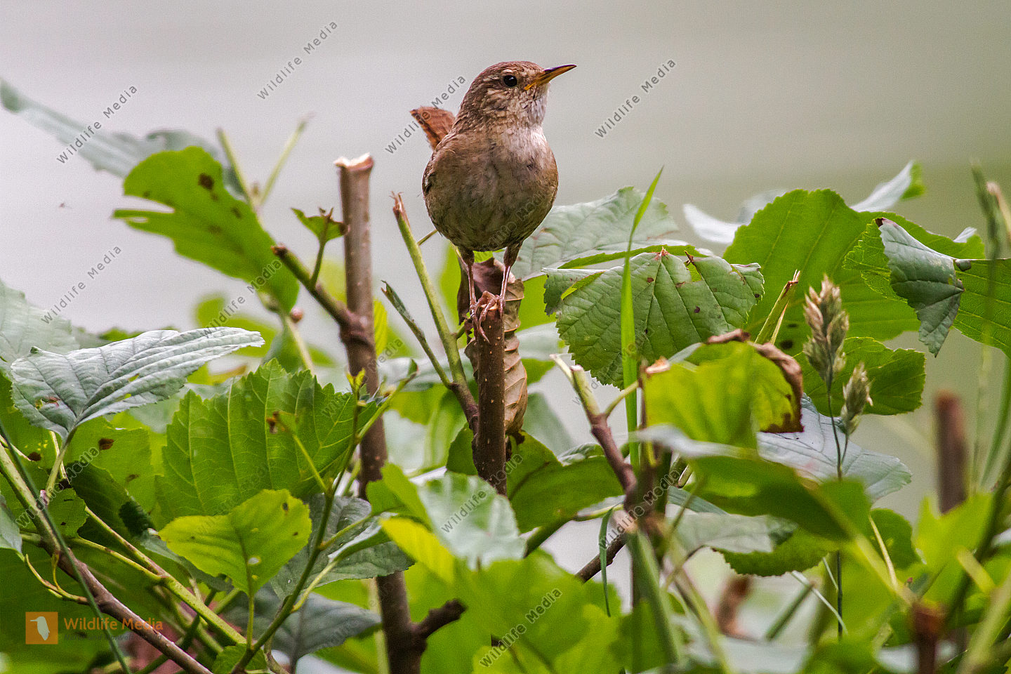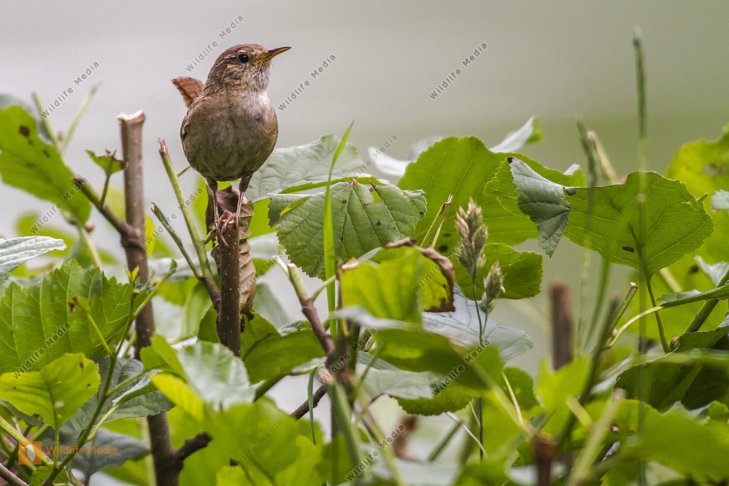 Ein Zaunkönig sitzt auf einem Ast