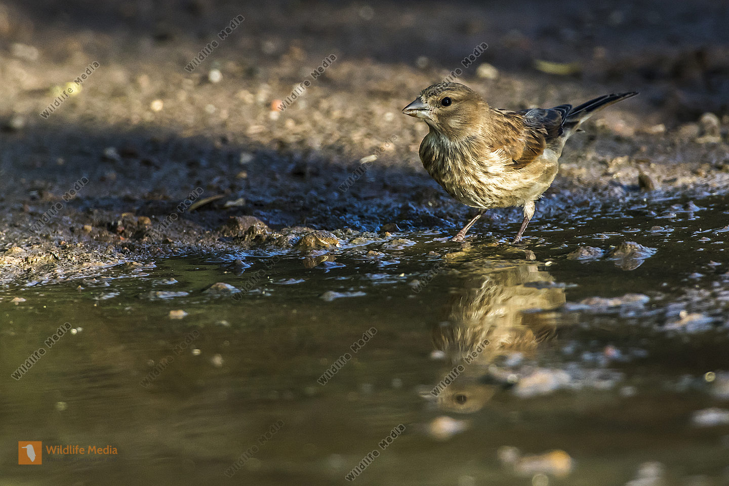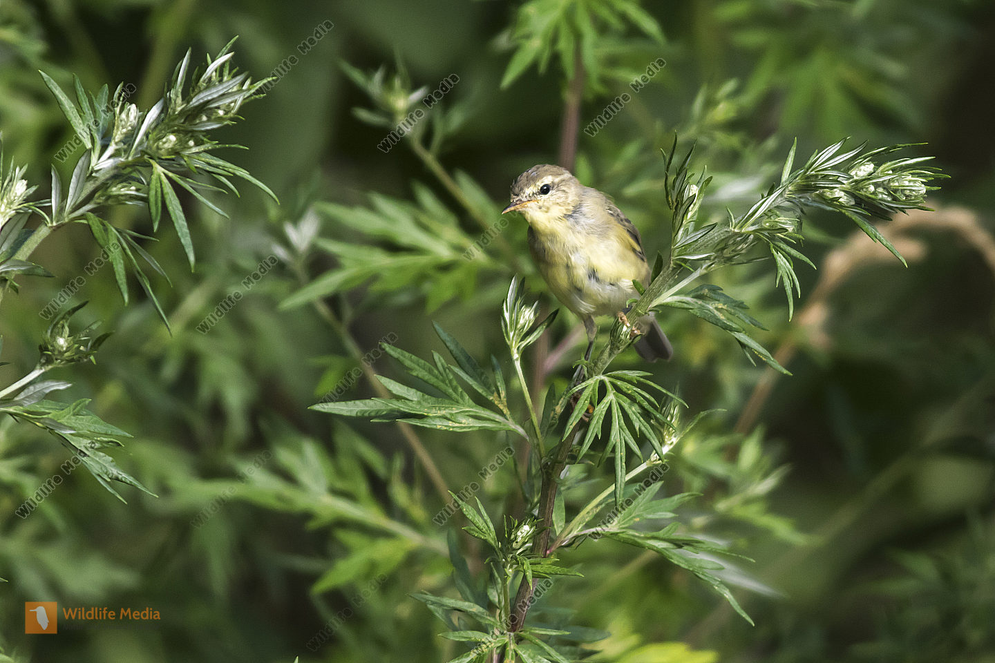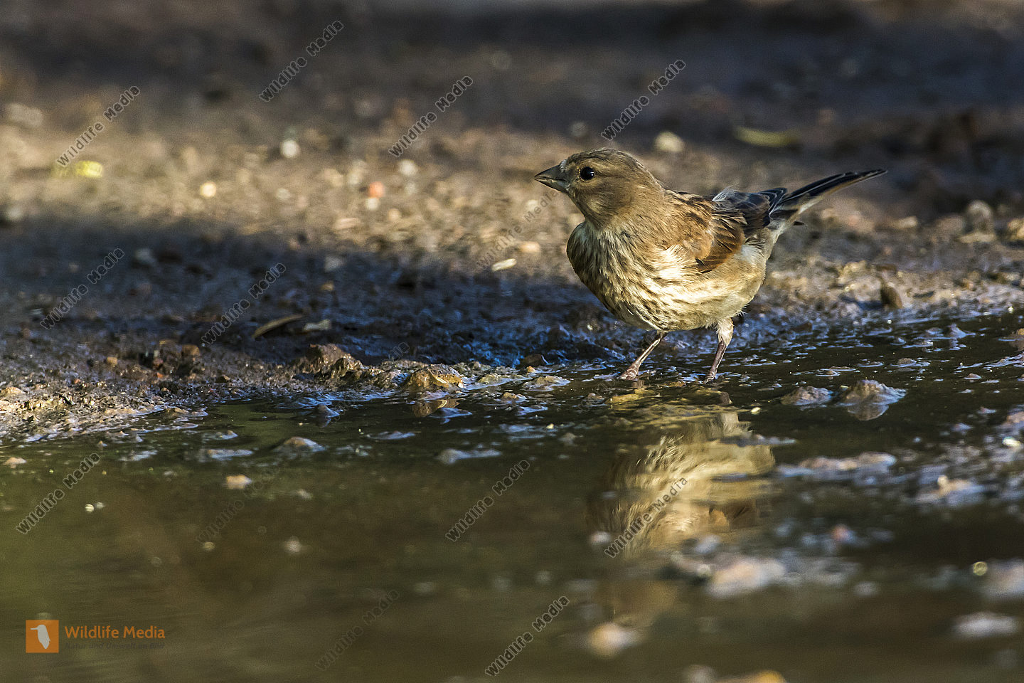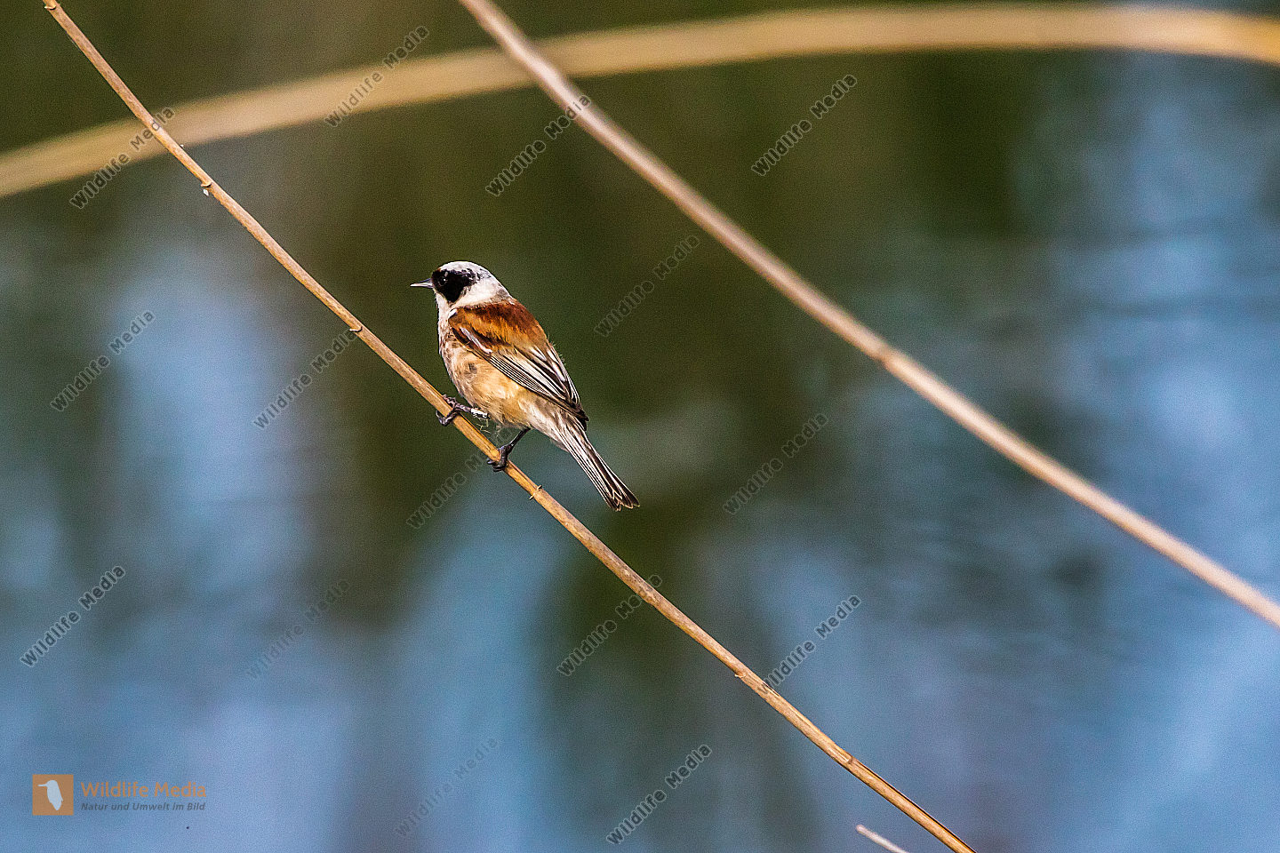Ein Zaunkönig im Schilf eines Bachufers