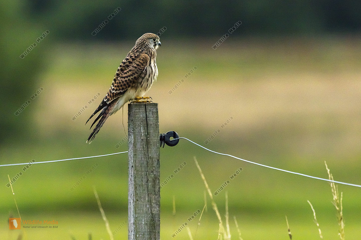 Ein Turmfalke sitzt auf seiner Warte und späht nach Beute