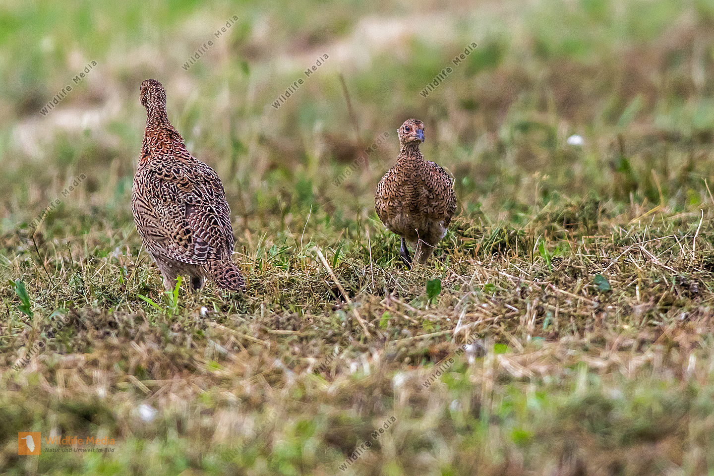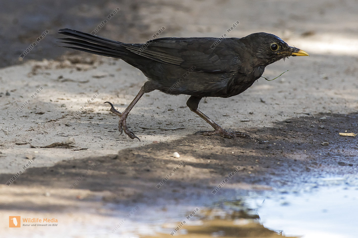 Eine Wacholderdrossel sucht auf einer Wiese nach Nahrung