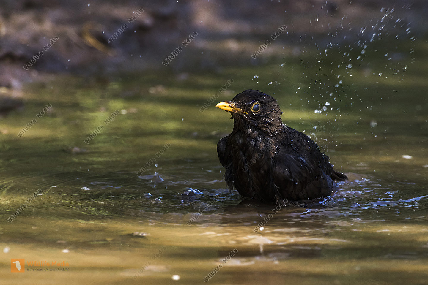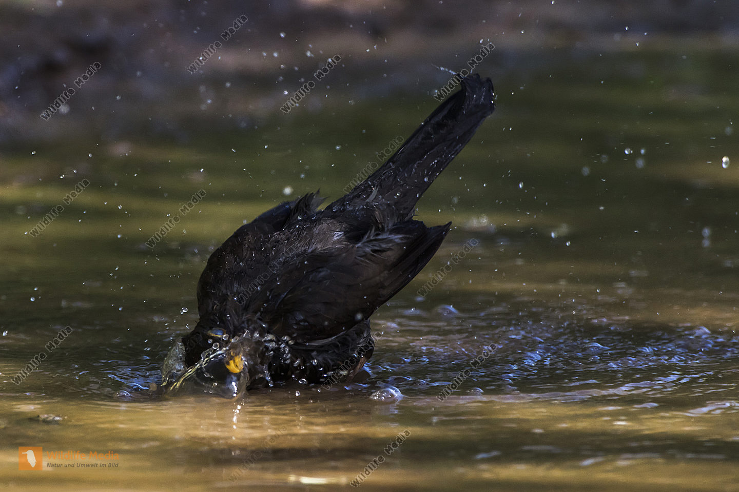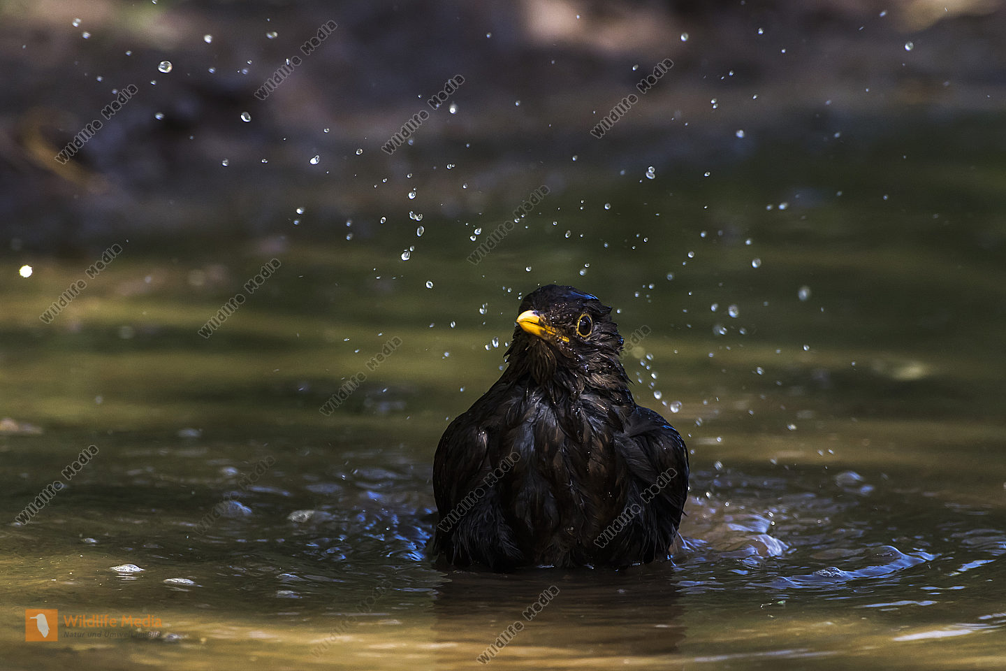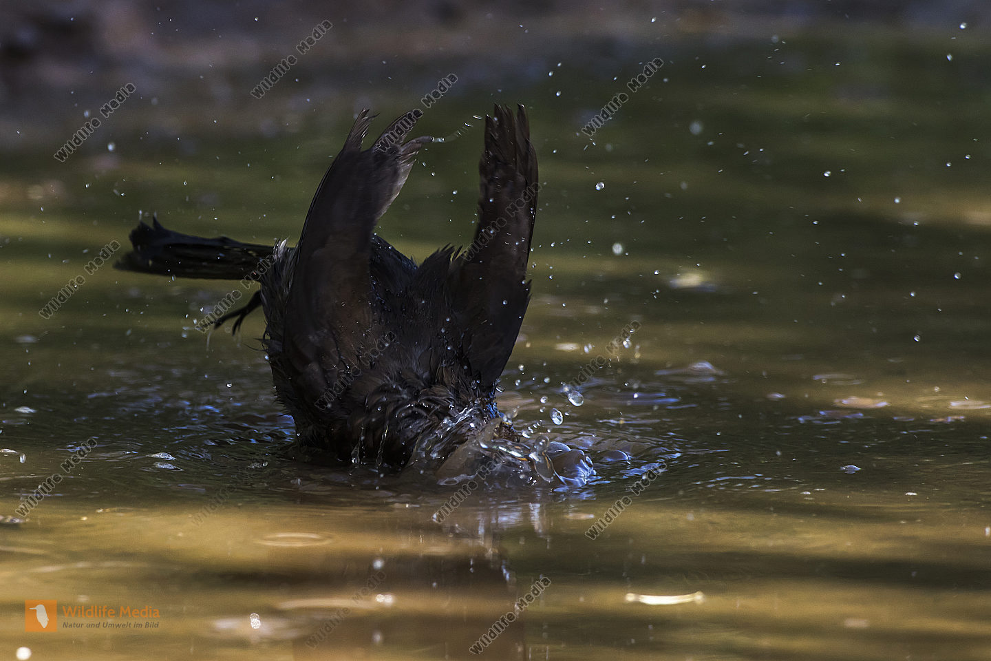 Eine Wasseramsel im Traunbach bei Boerfink im Hunsrueck in Rheinland-Pfalz