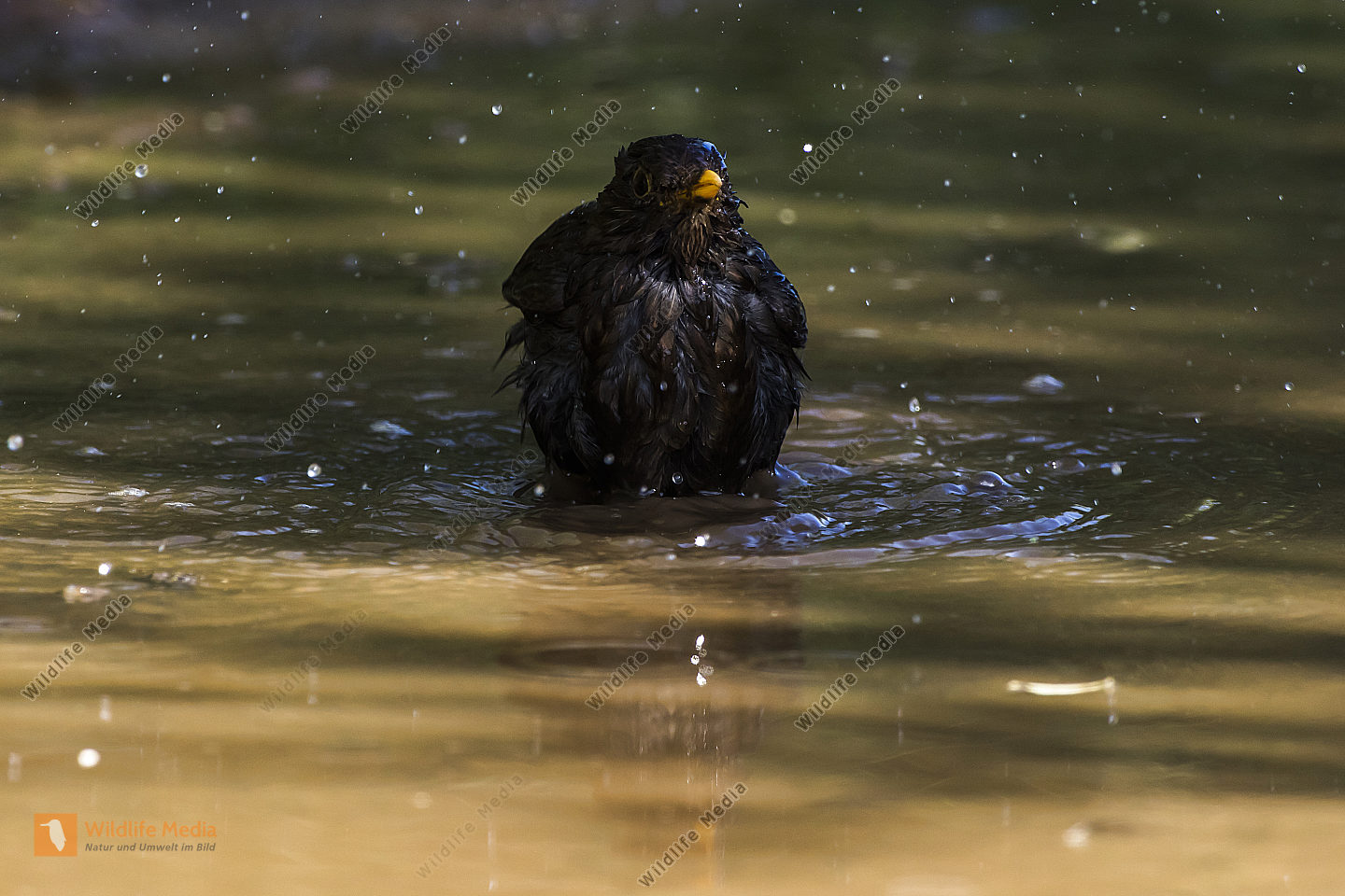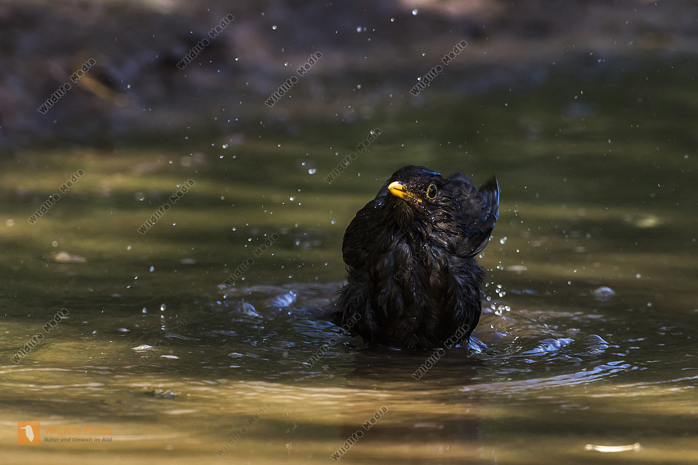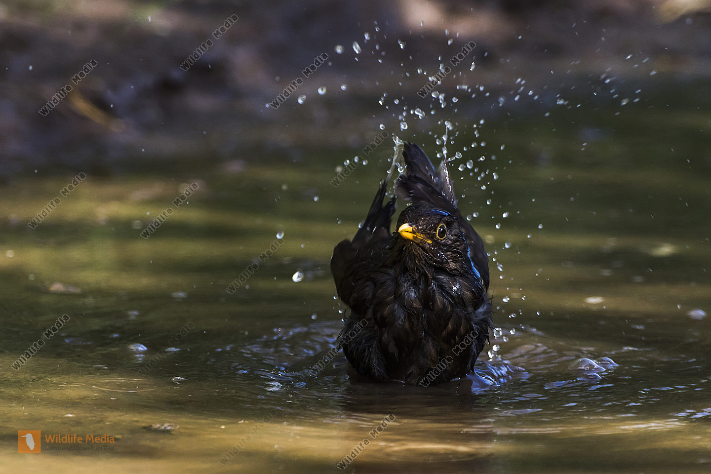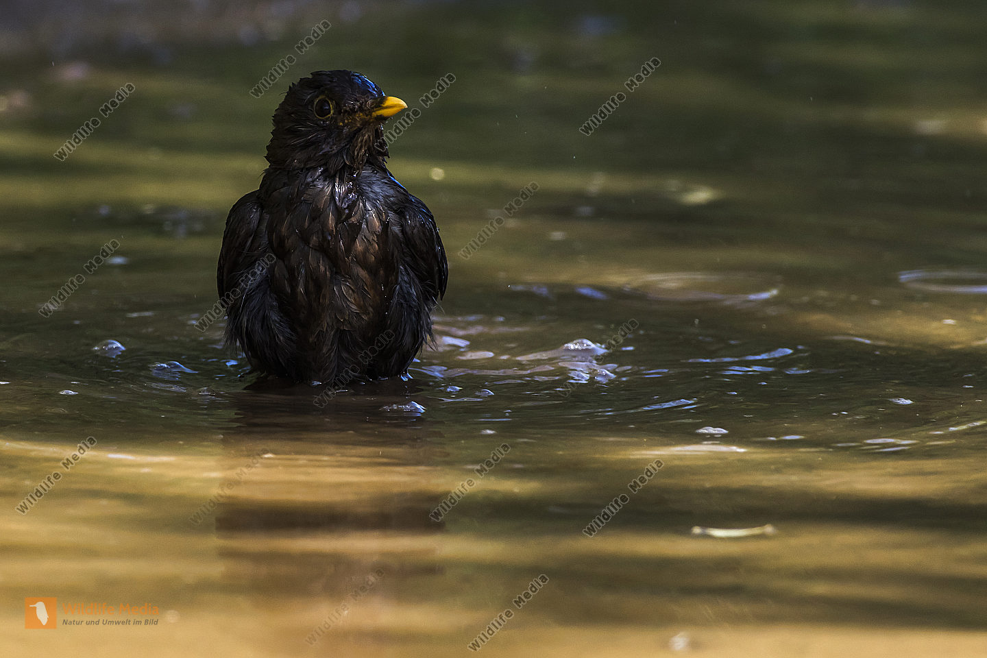 Eine Wasseramsel im Traunbach bei Boerfink im Hunsrueck in Rheinland-Pfalz